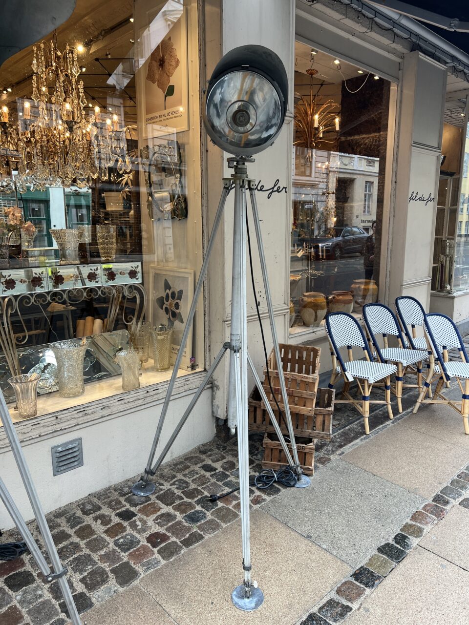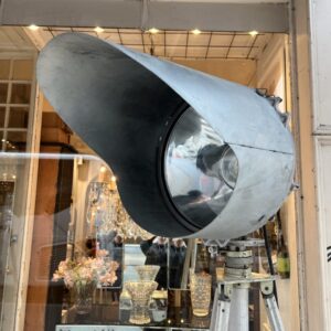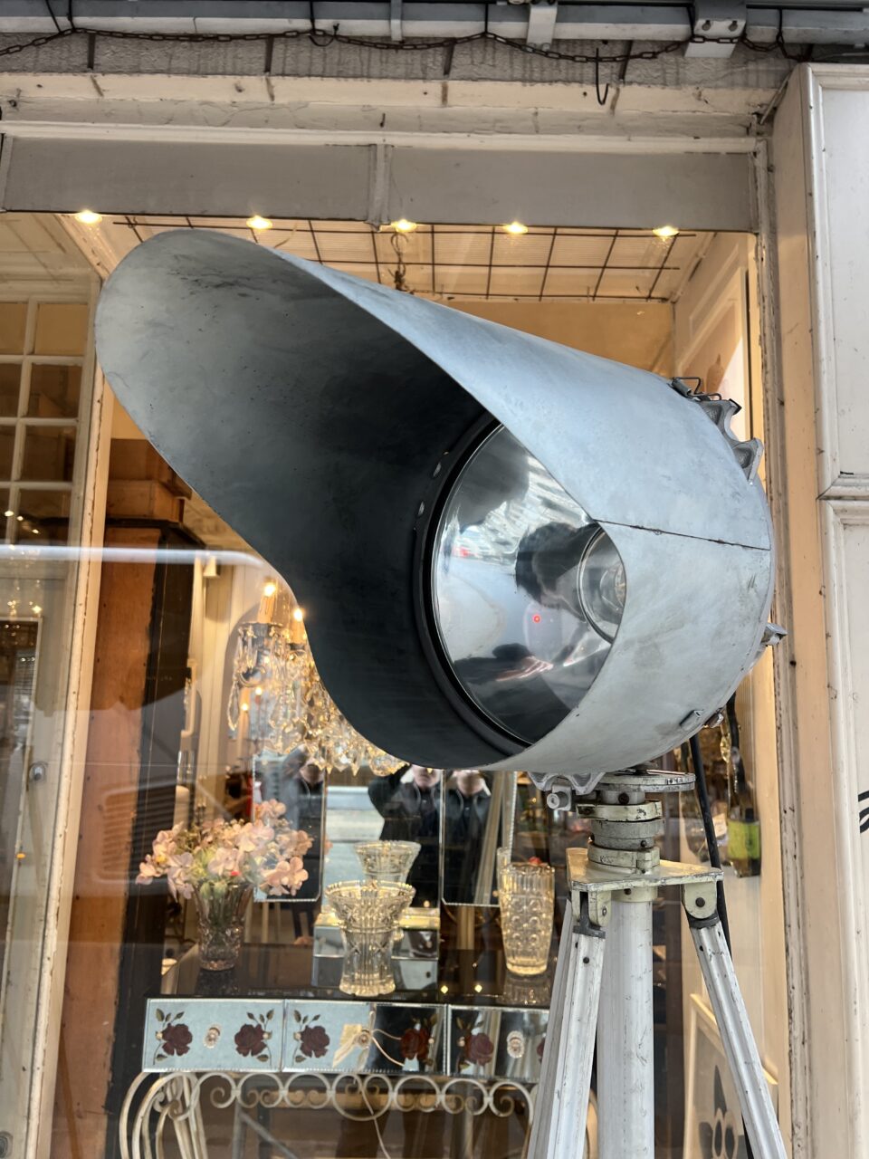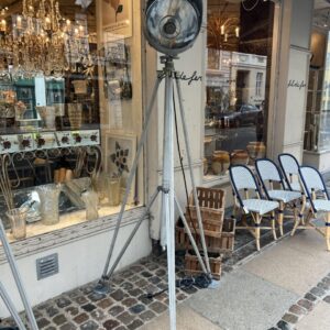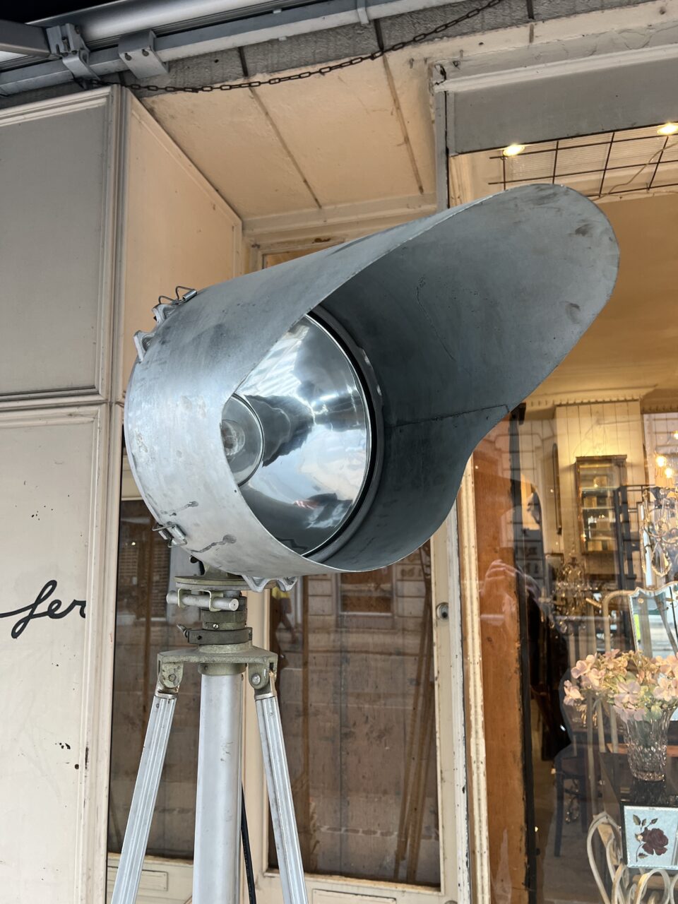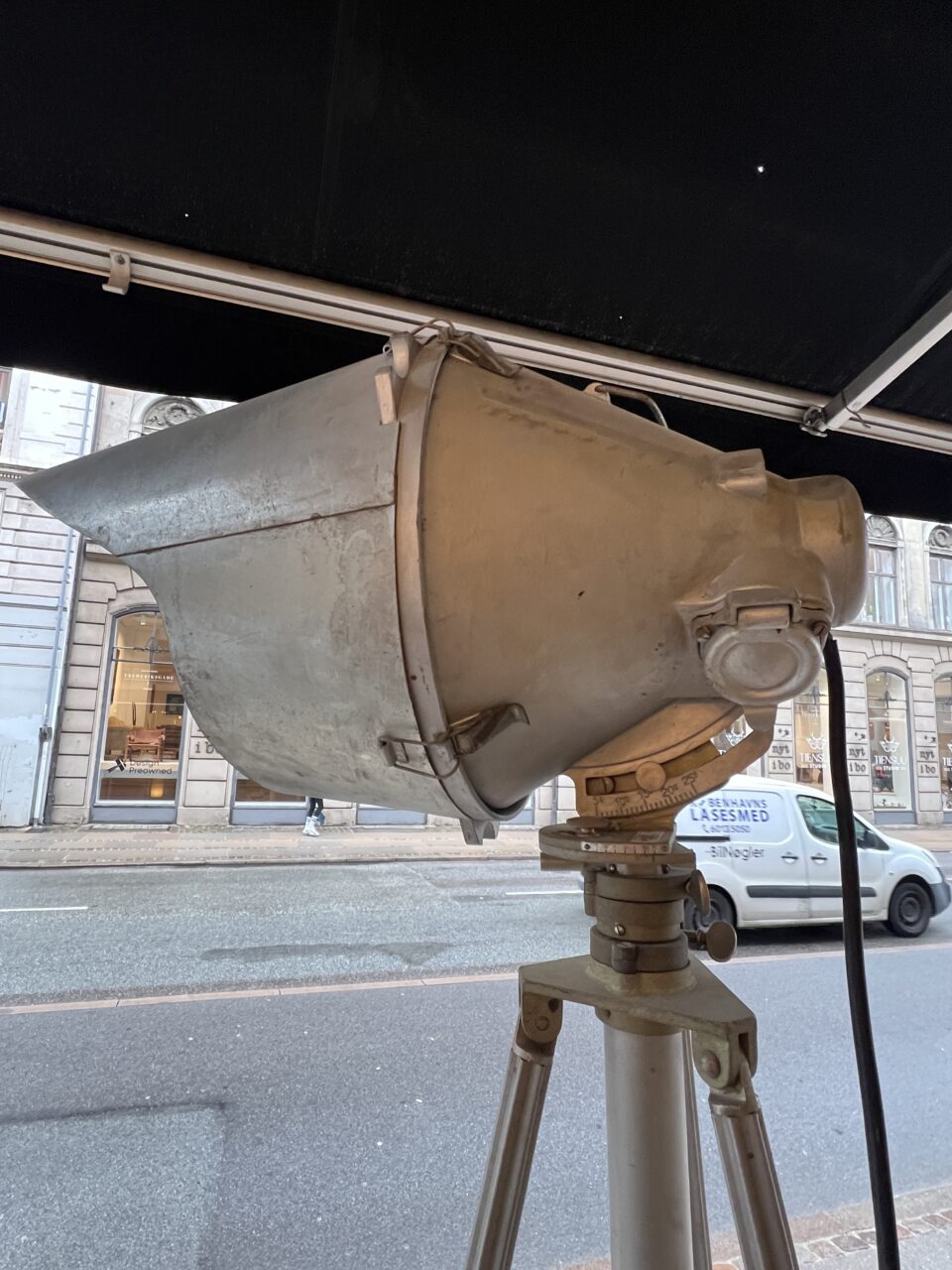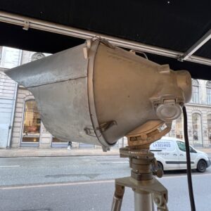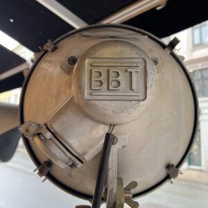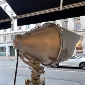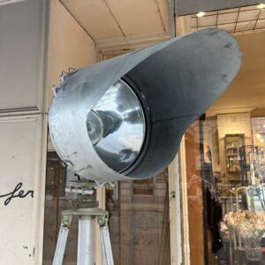 Gammel lufthavnsprojektør fra det franske firma BBT (Baudouin, Bailleul & Tasset) råt industriel design fra midten af det 20. århundrede.