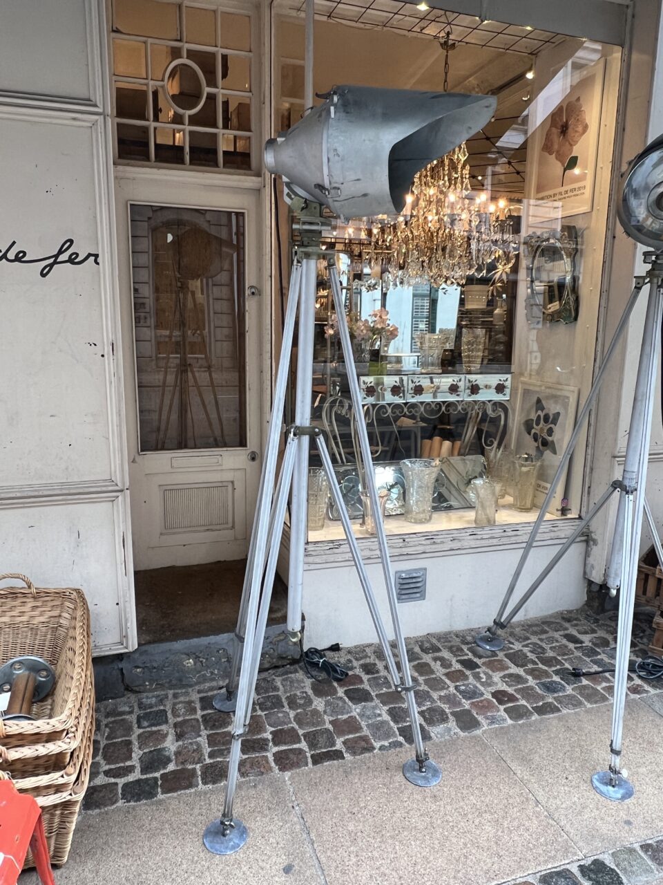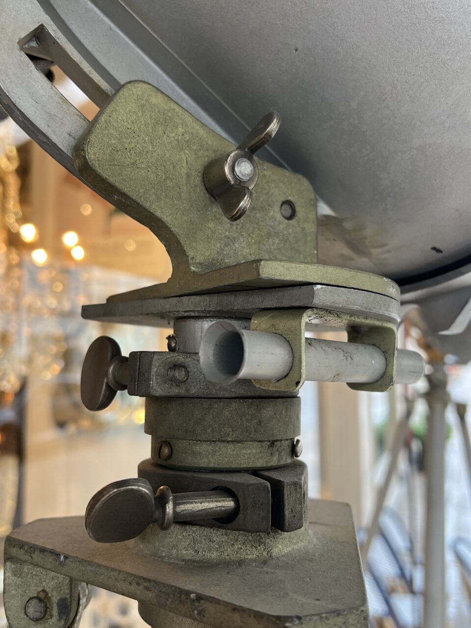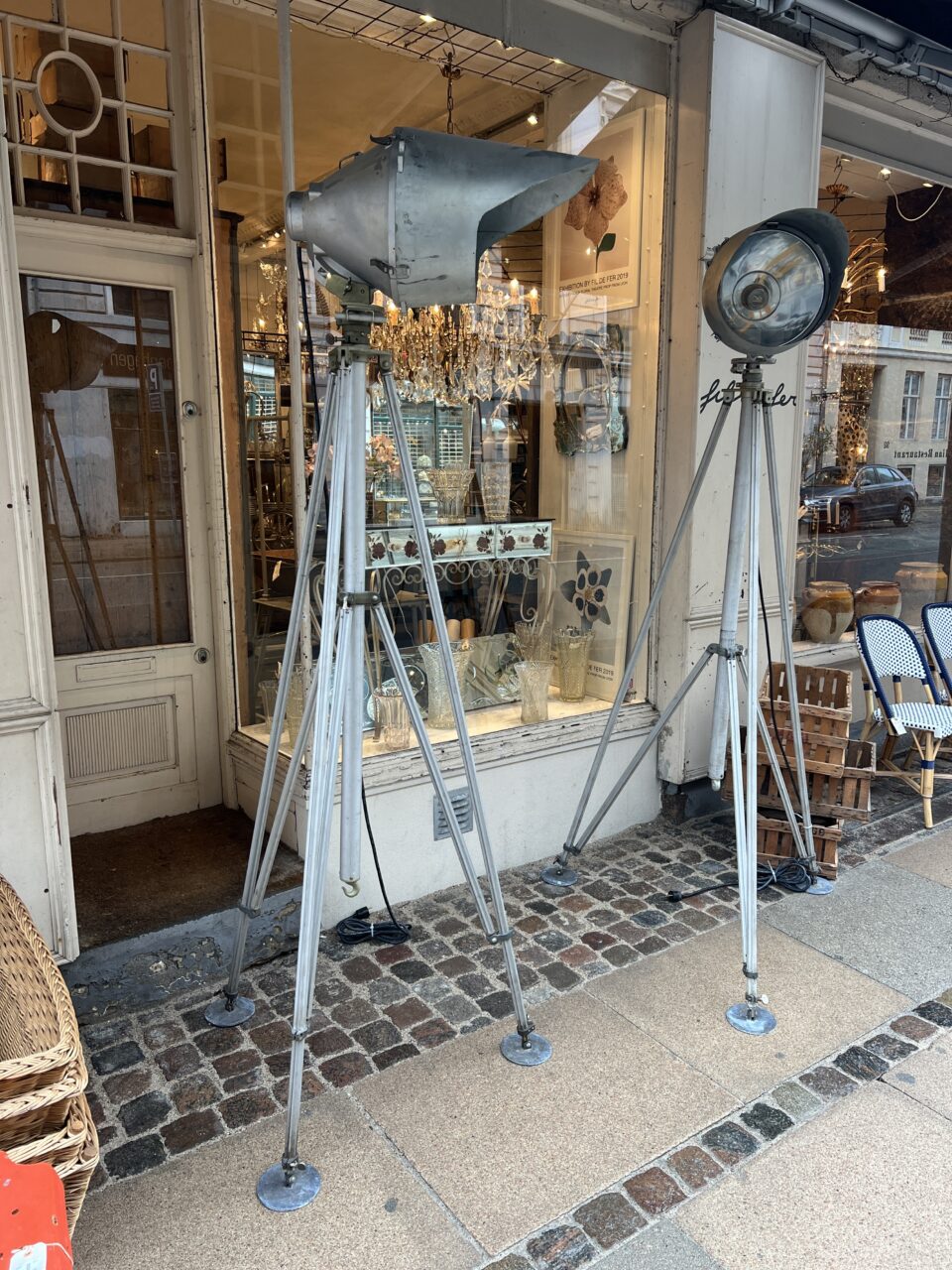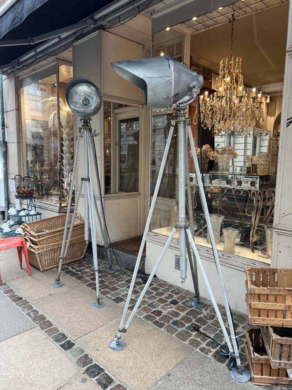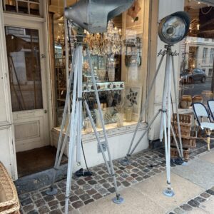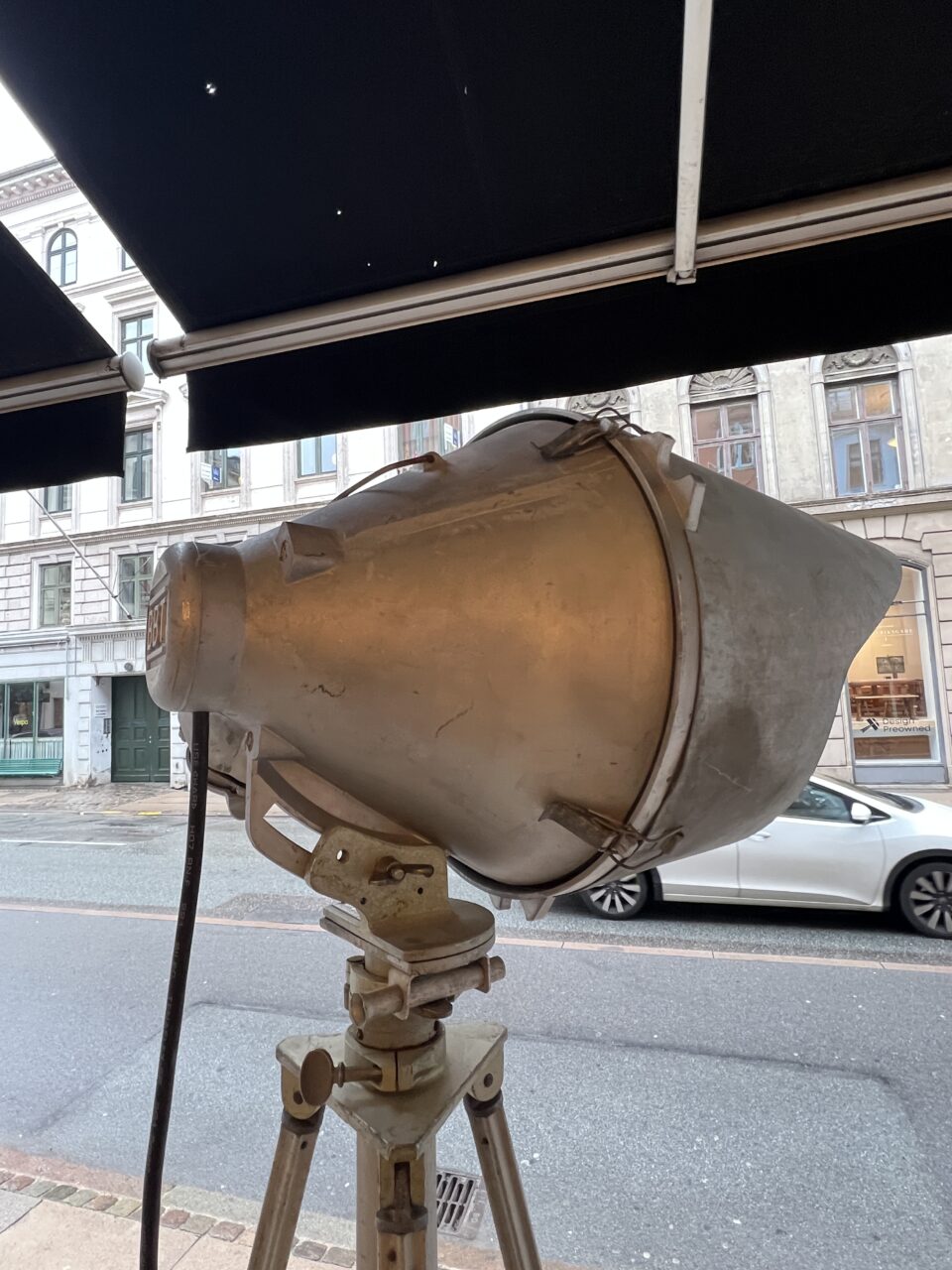 Gammel lufthavnsprojektør fra det franske firma BBT (Baudouin, Bailleul & Tasset) råt industriel design fra midten af det 20. århundrede.