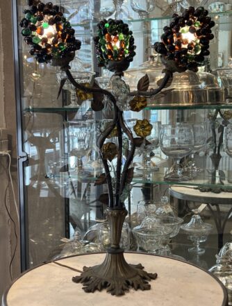 Funky fransk palmelampe fra 1970 erne , i metal, med 8 fine tragtformet glas skærme, som fordeler sig på de 2 grene, lampen er udstyret med.