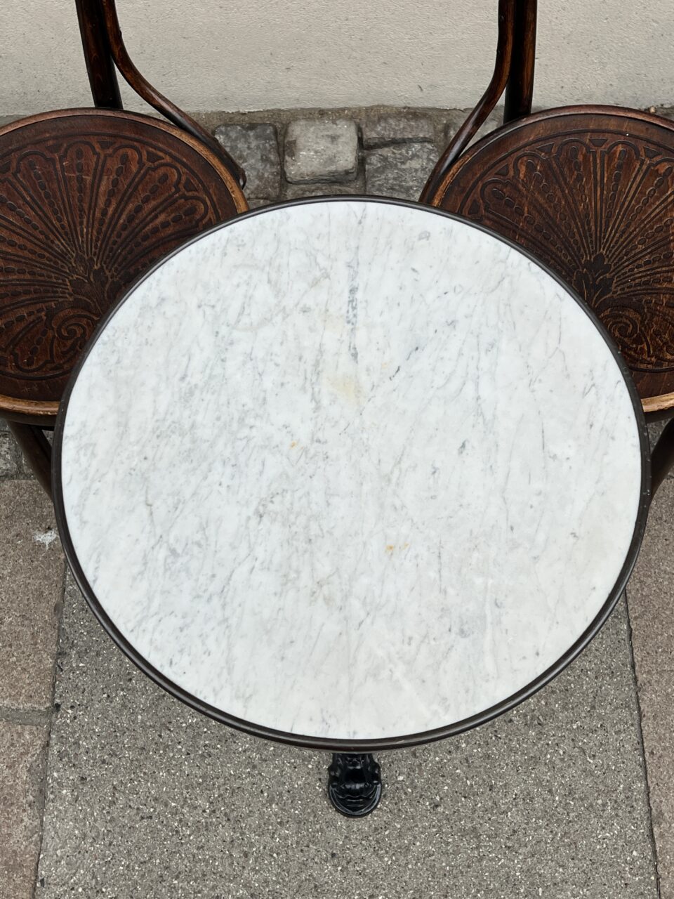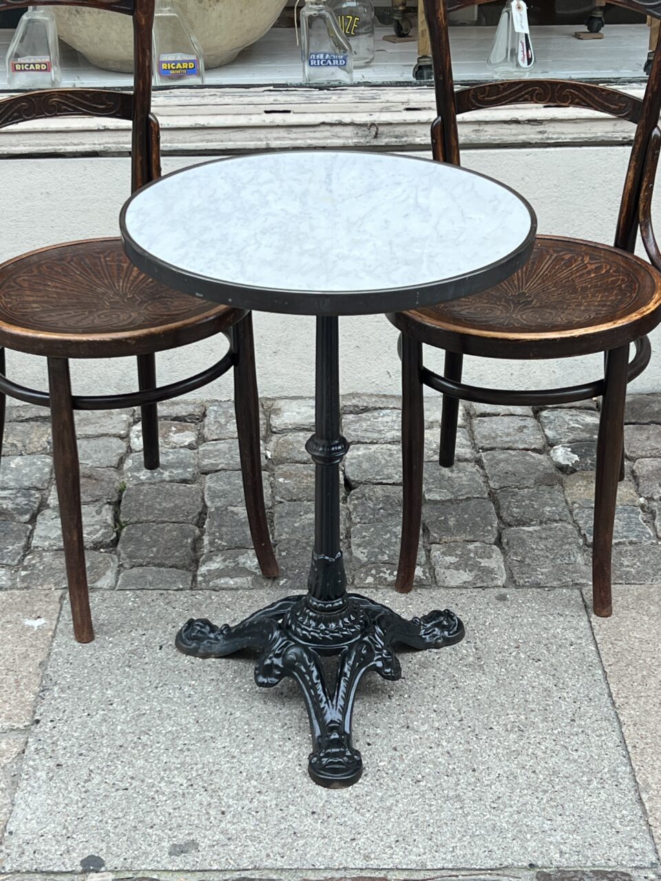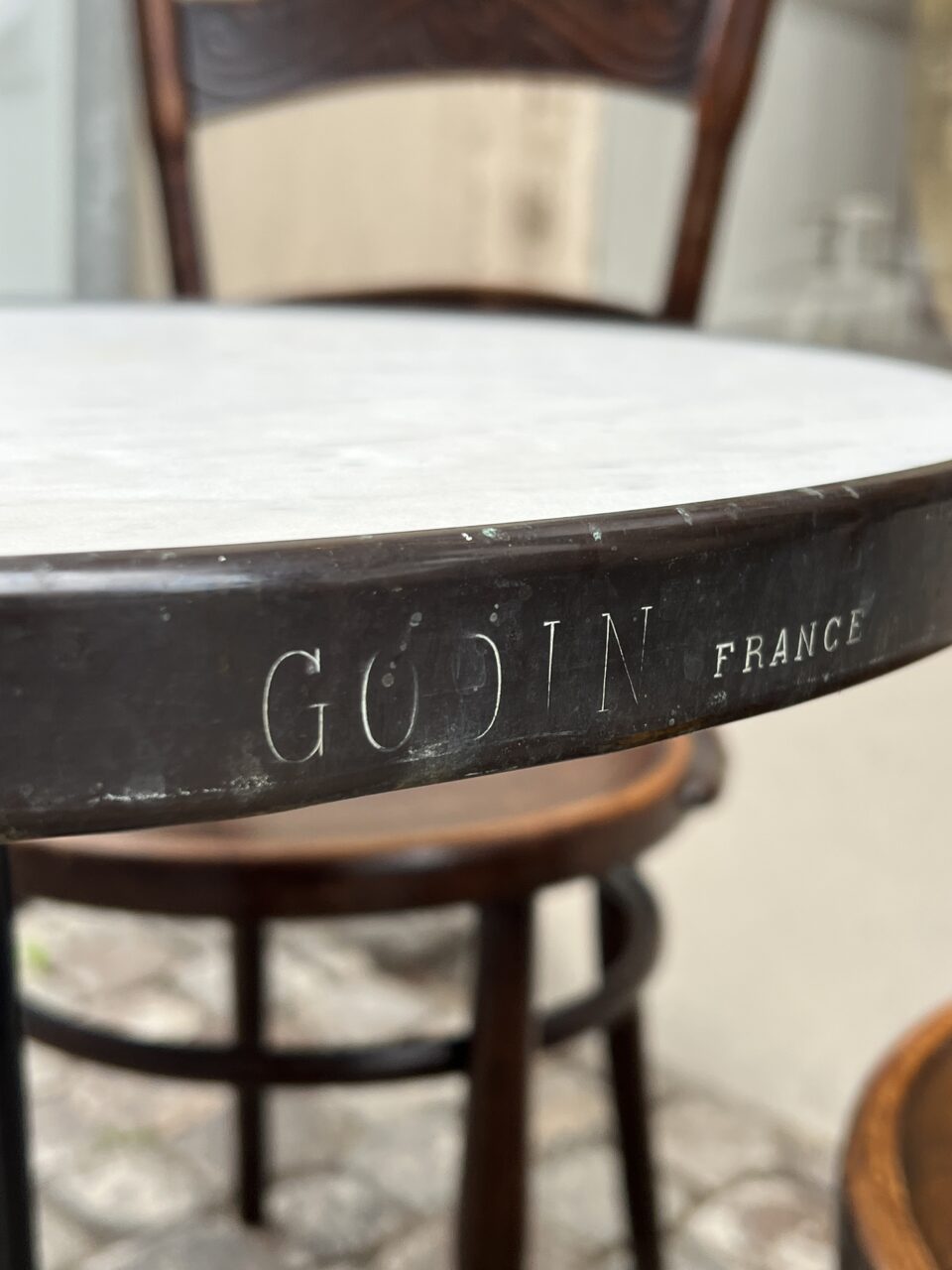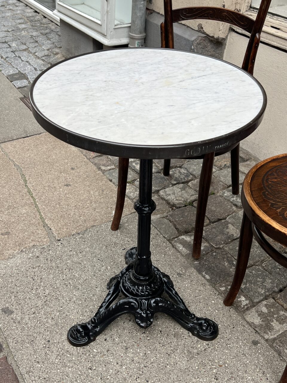 The table was manufactured by GODIN, originally in the classic French cafés, and is also well suited for use on the balcony / terrace or a small kitchen space.