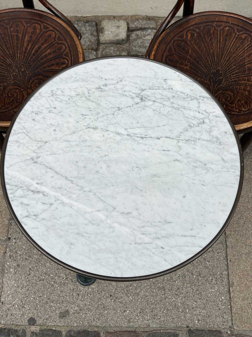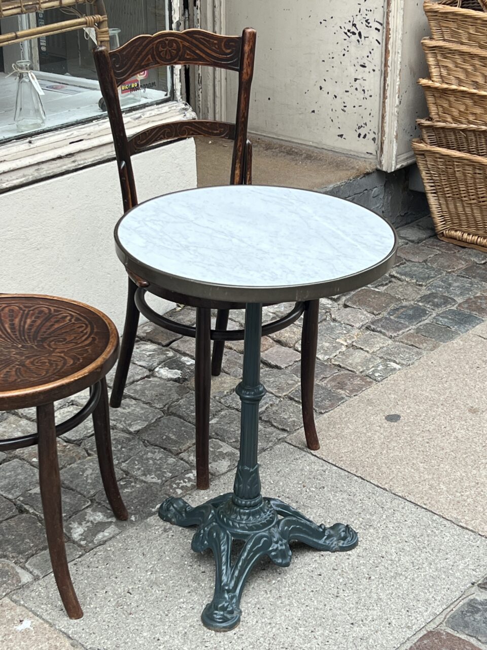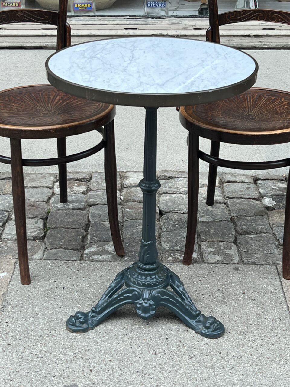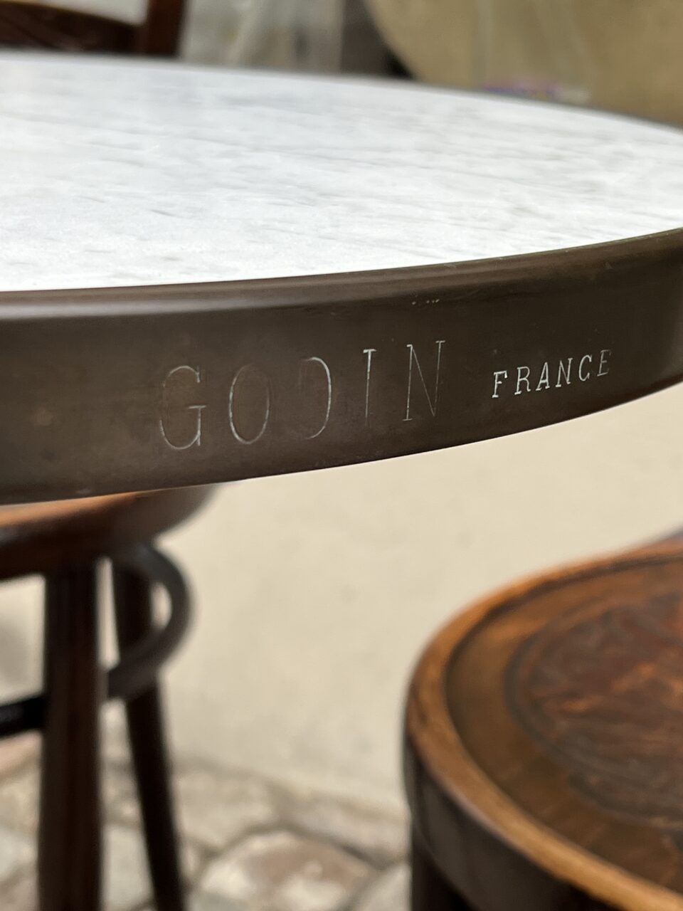 The table was manufactured by GODIN, originally in the classic French cafés, and is also well suited for use on the balcony / terrace or a small kitchen space.