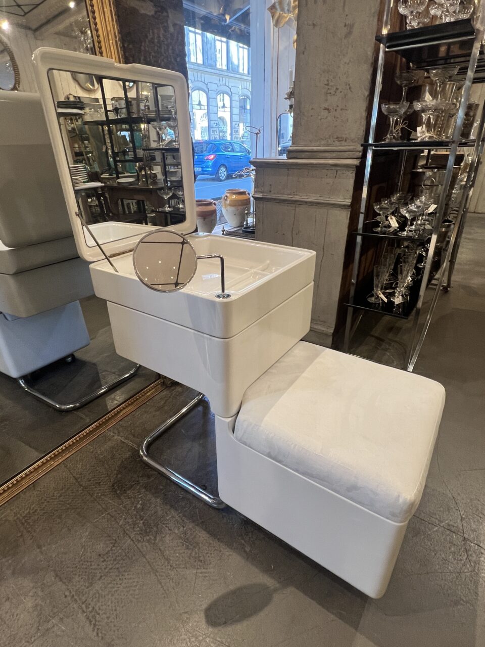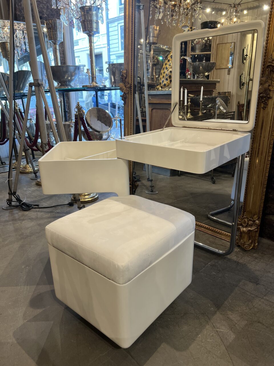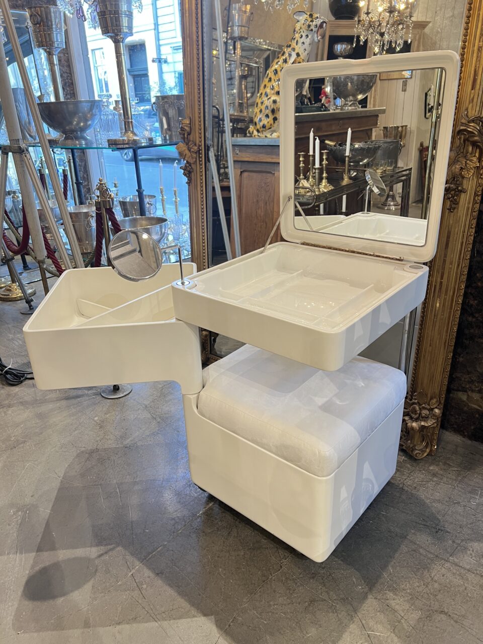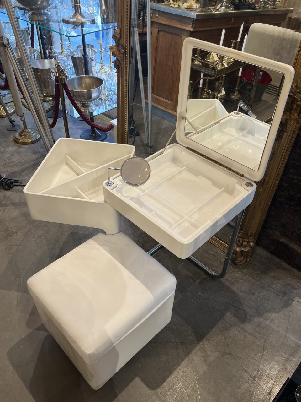 Italian dressing table from the 1970s, designed by Carlo Urbinati, known for his modernist furniture design in white glossy plastic material,