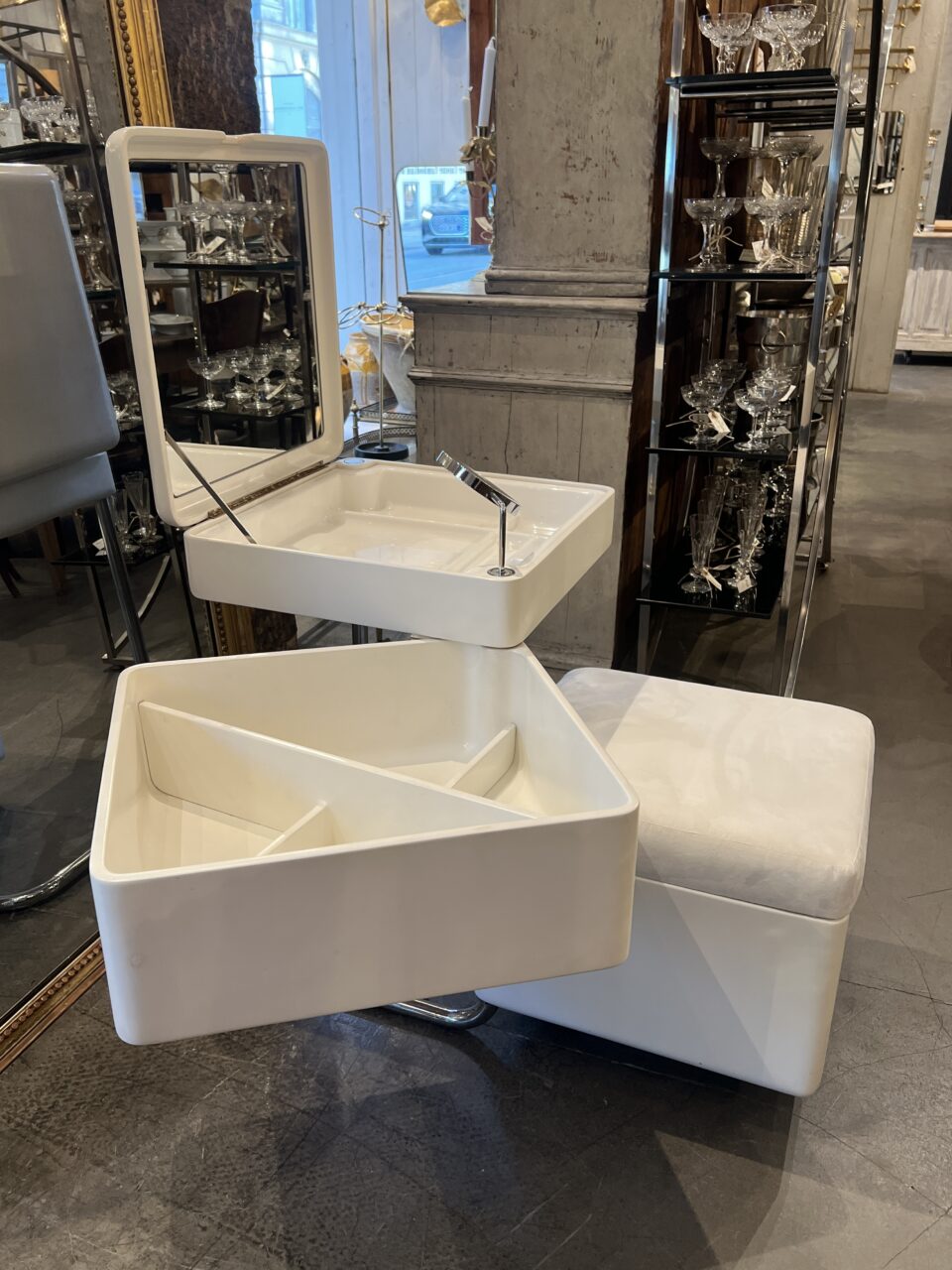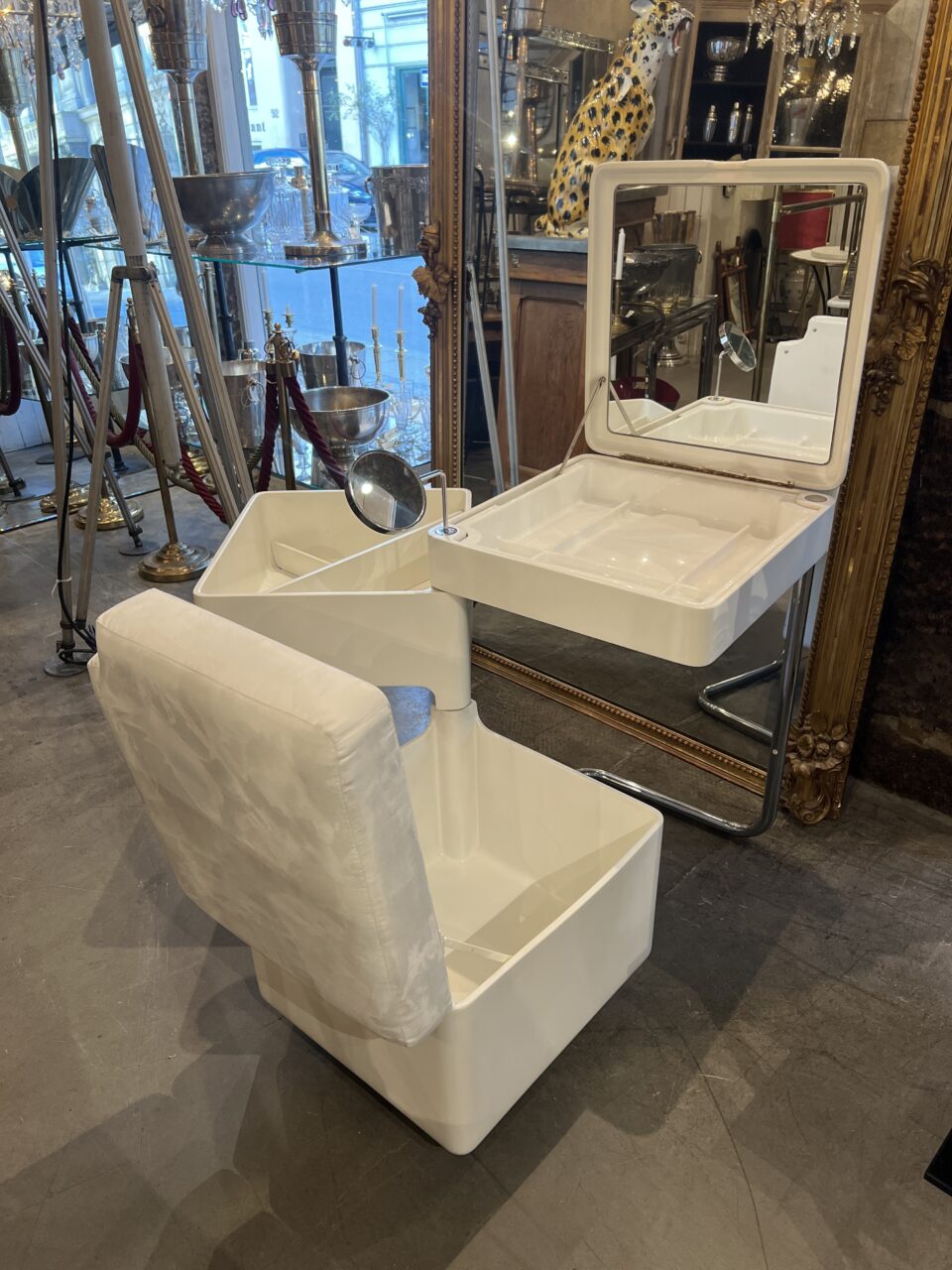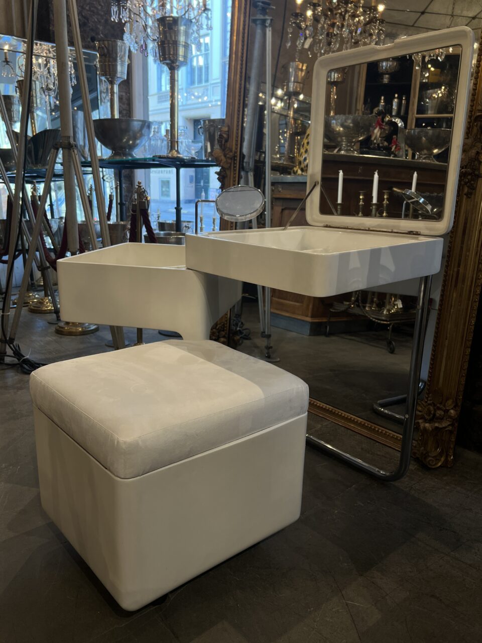 Italian dressing table from the 1970s, designed by Carlo Urbinati, known for his modernist furniture design in white glossy plastic material,