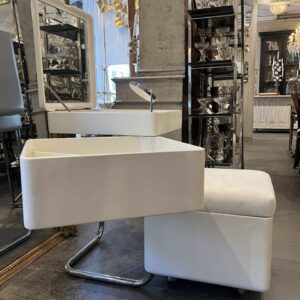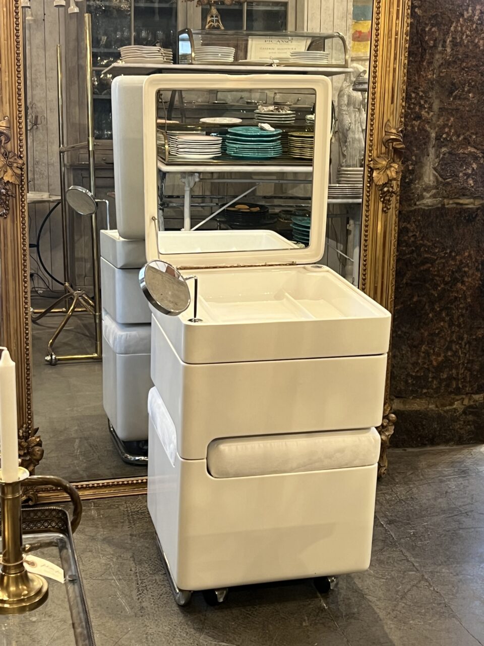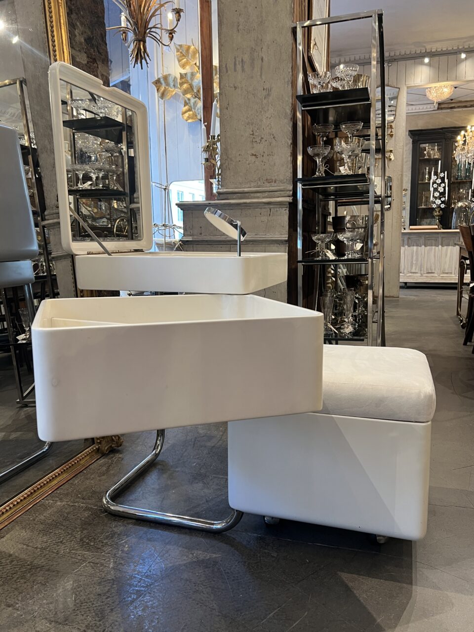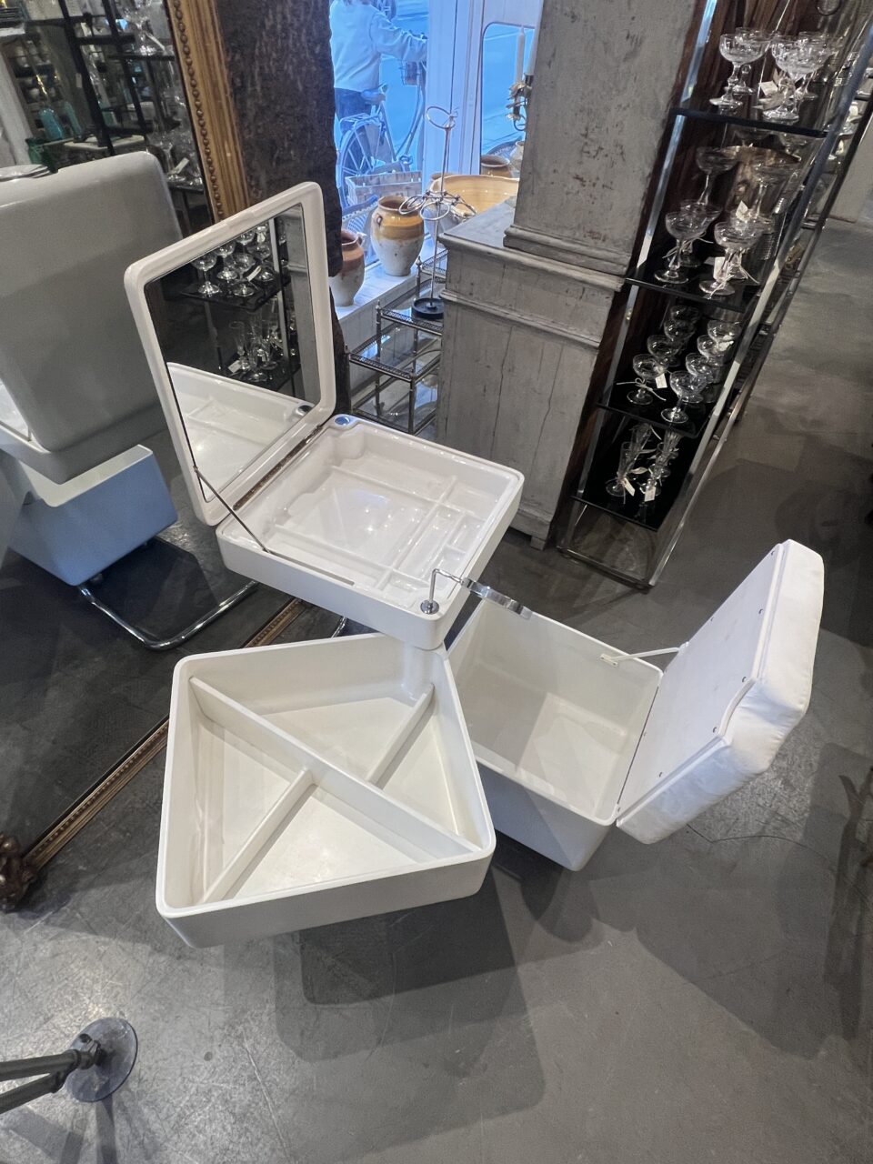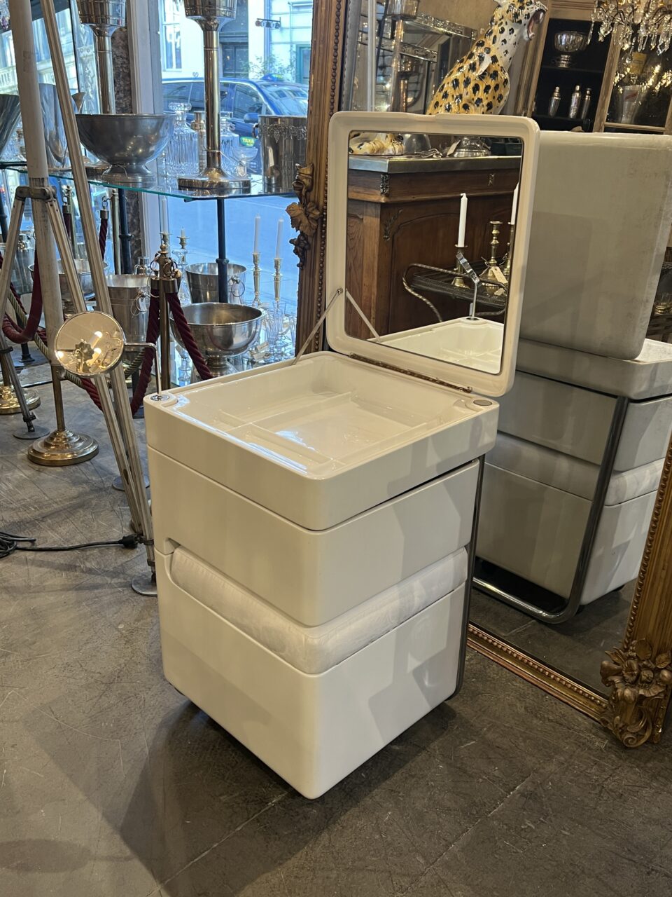 Italian dressing table from the 1970s, designed by Carlo Urbinati, known for his modernist furniture design in white glossy plastic material,