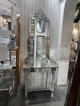 This elegant piece is designed with an elegantly detailed iron base, with the most beautiful curved details and lines and on top of the base rests an exquisitely carved pale marble slab with rounded edges.