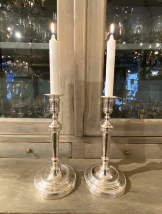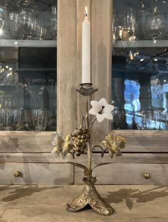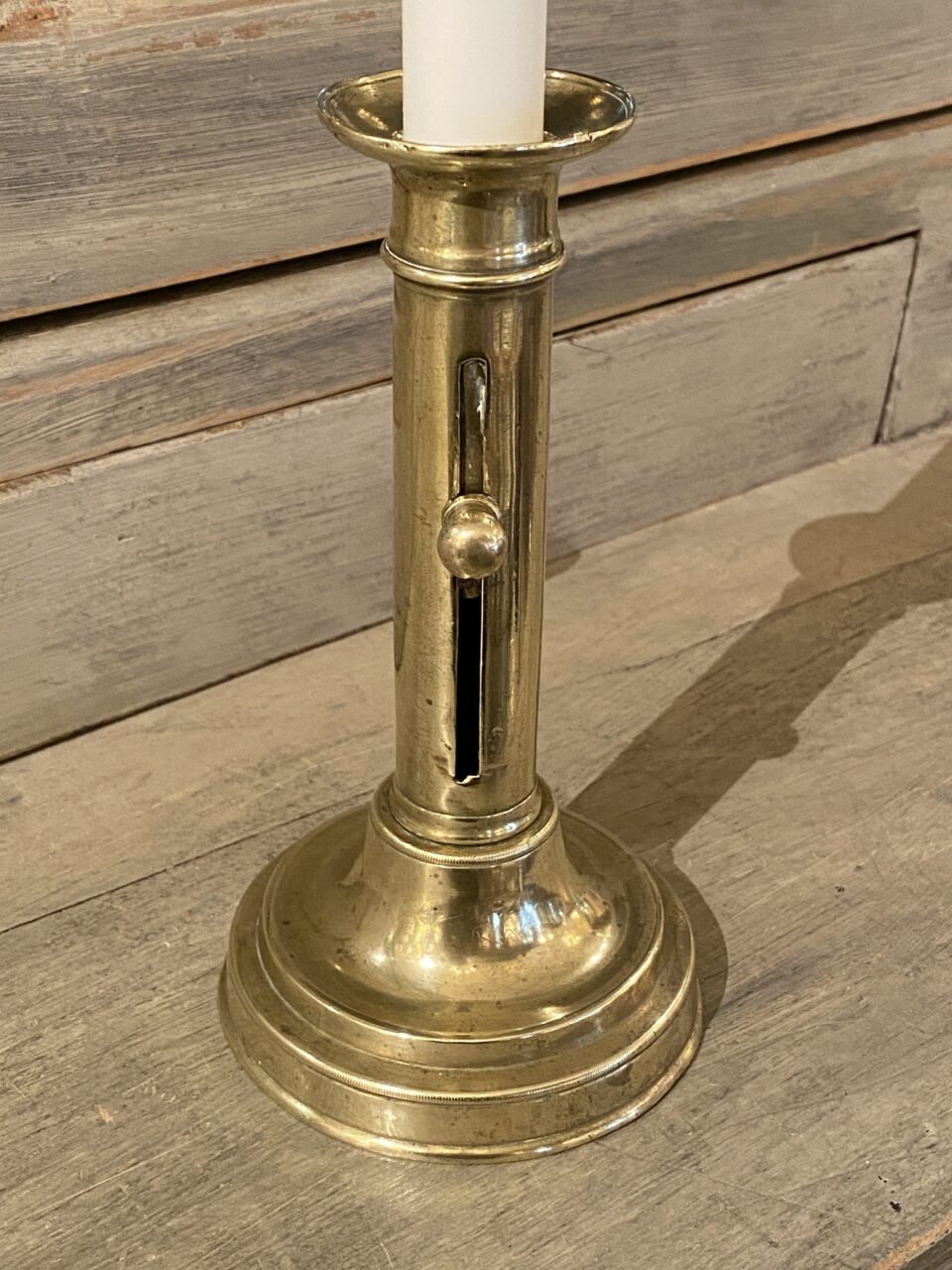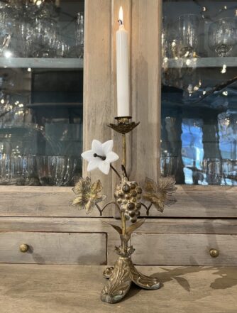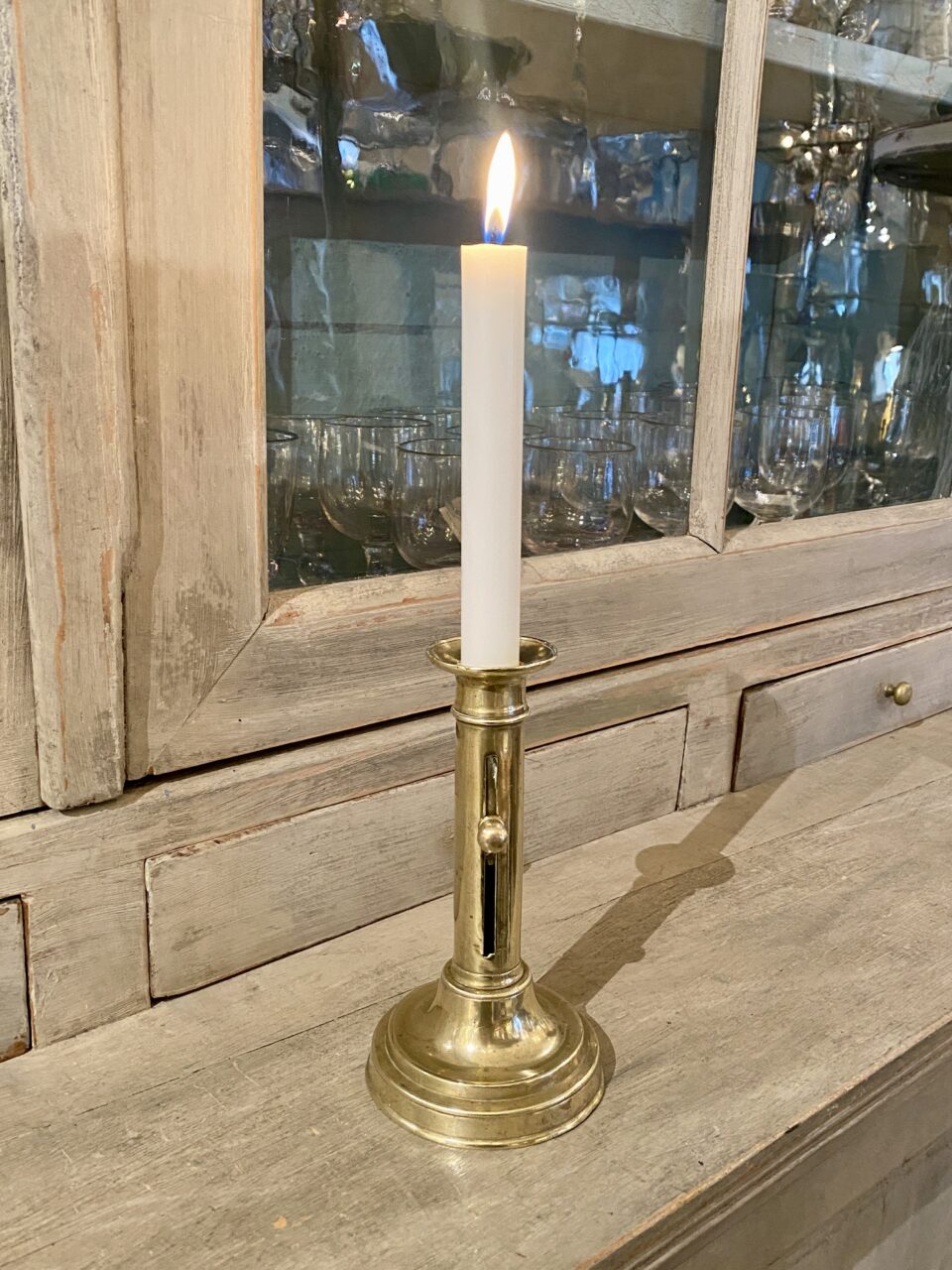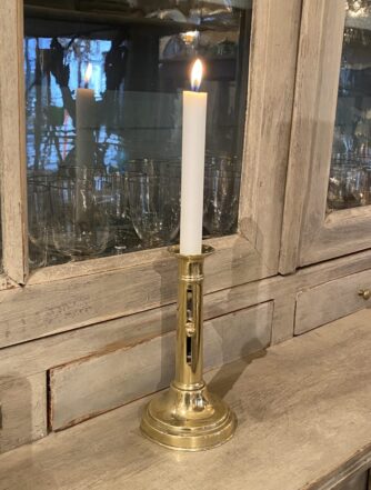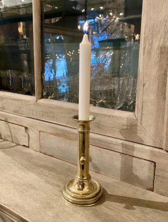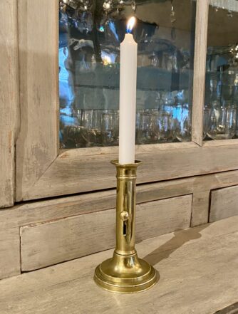 Handsome old brass candlestick, from France – also known as a chamber candlestick. Lovely patina.