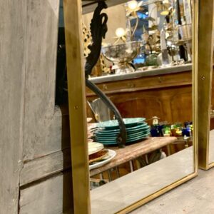 Beautiful and simple small brass mirror from 1950s-60s Italy, in a smart square shape with a wide brass frame. The mirror glass is original and the mirror is stylistically related to the designer Giò Ponti.