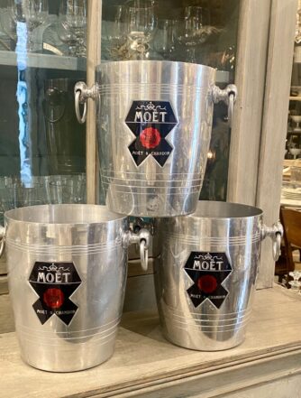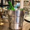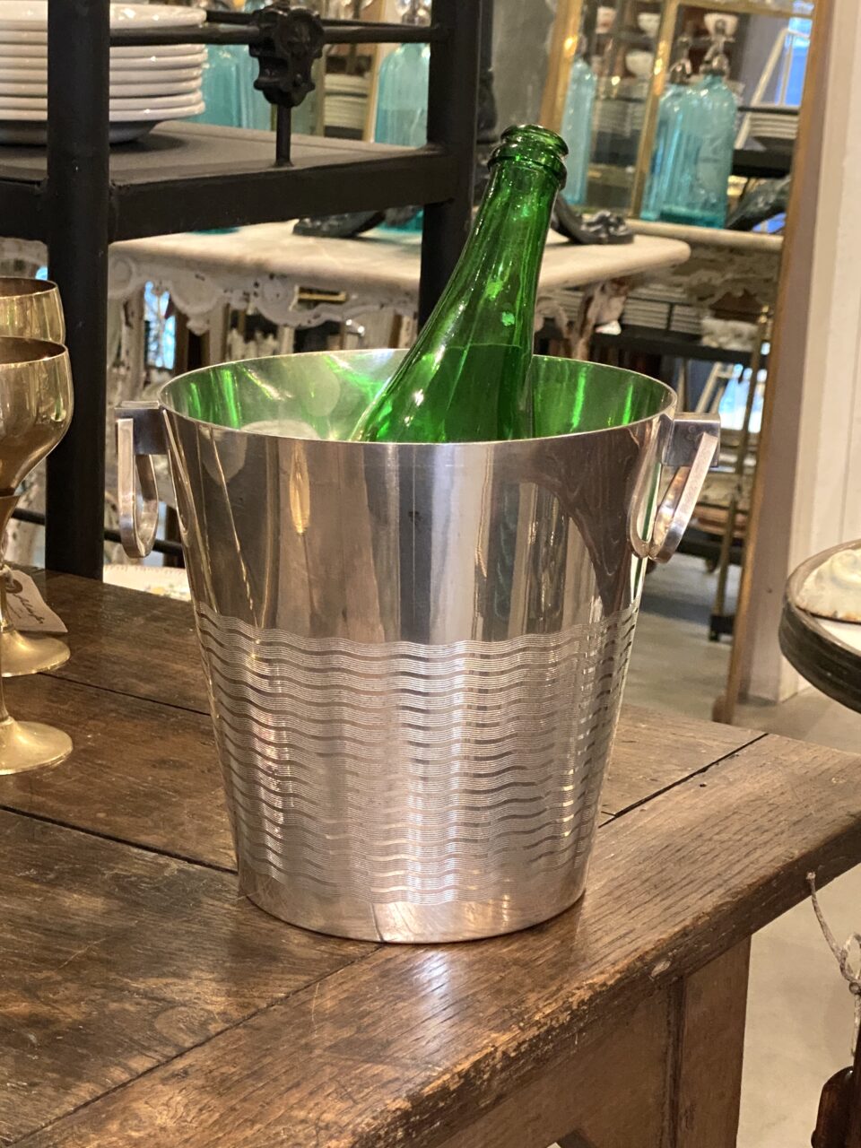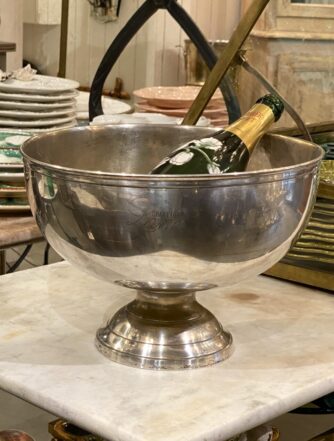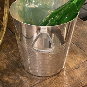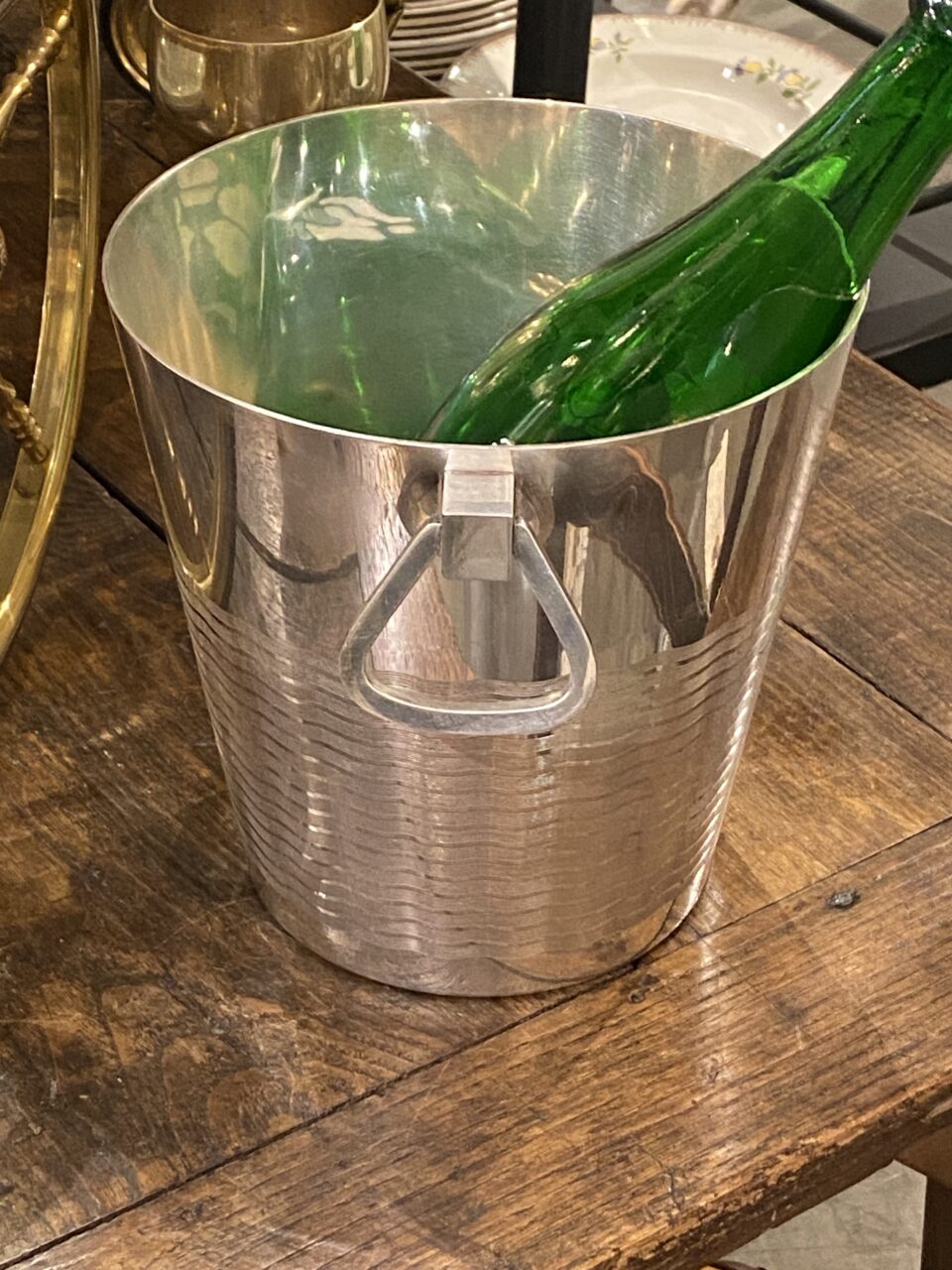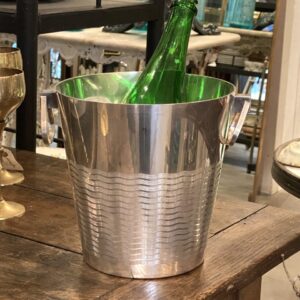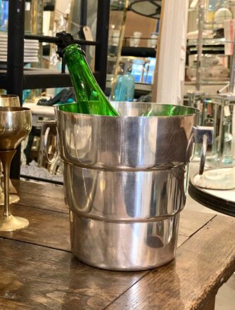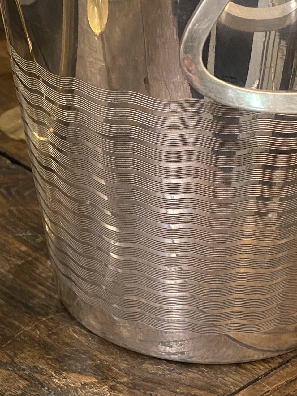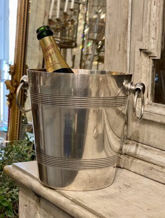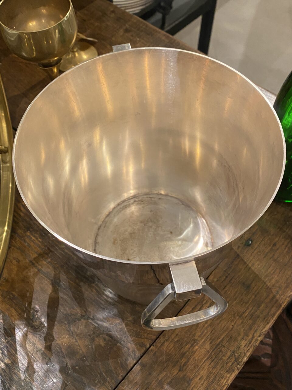 Classic old French champagne cooler/wine bucket, made of silver-plated brass, with large angular side handles.