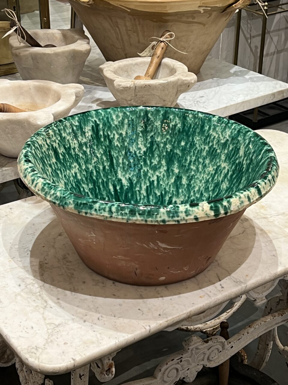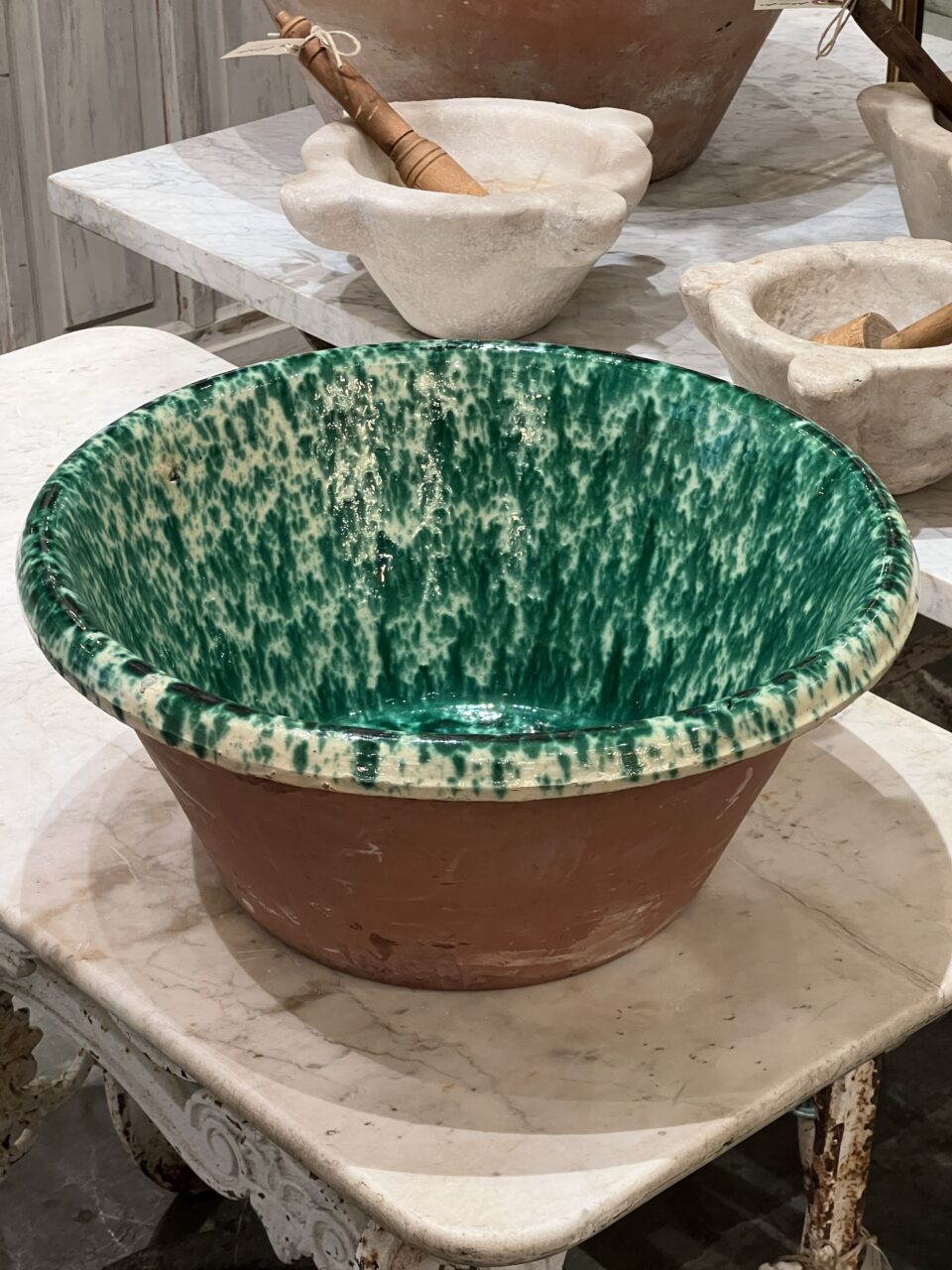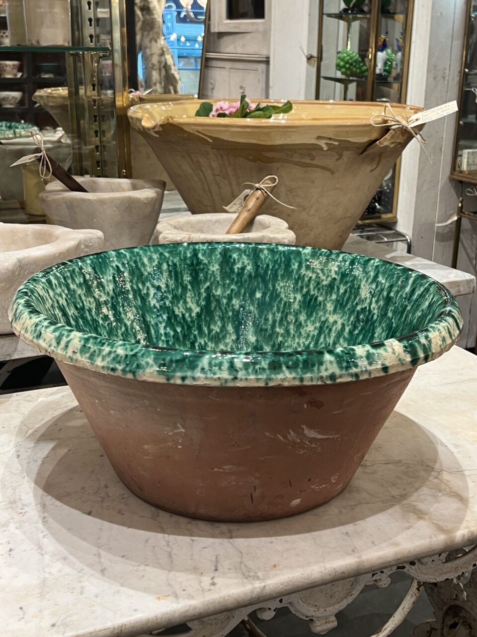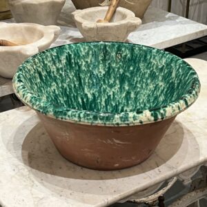 Antique handmade terracotta bowl, known as a “passata bowl” or “limmi”, originating from Puglia in Italy. Traditionally used to make passata (tomato sauce).