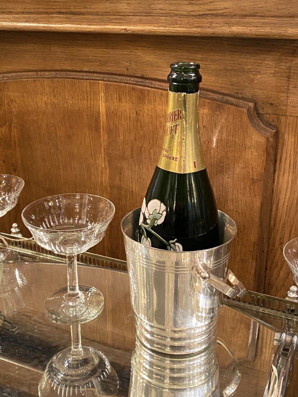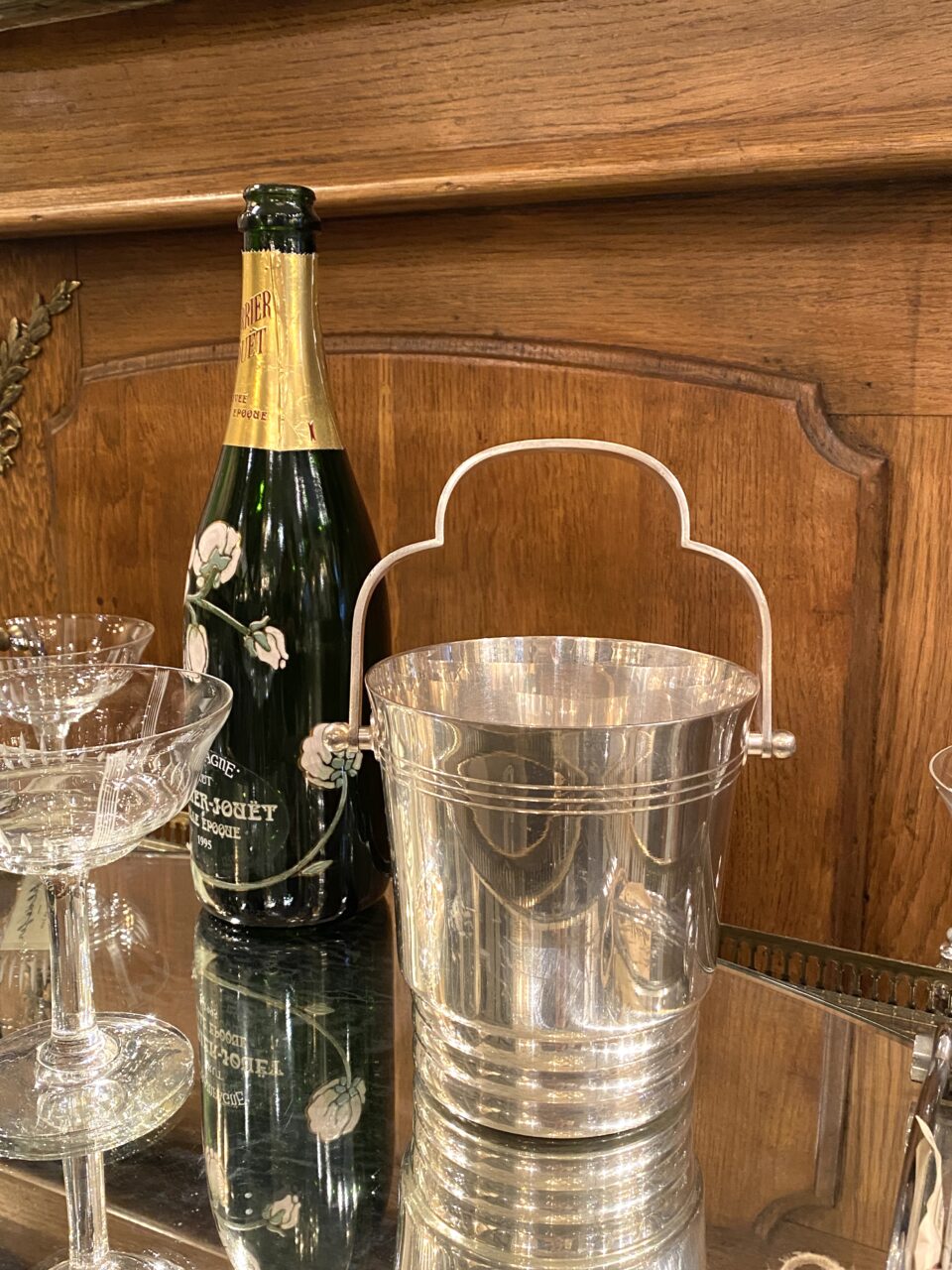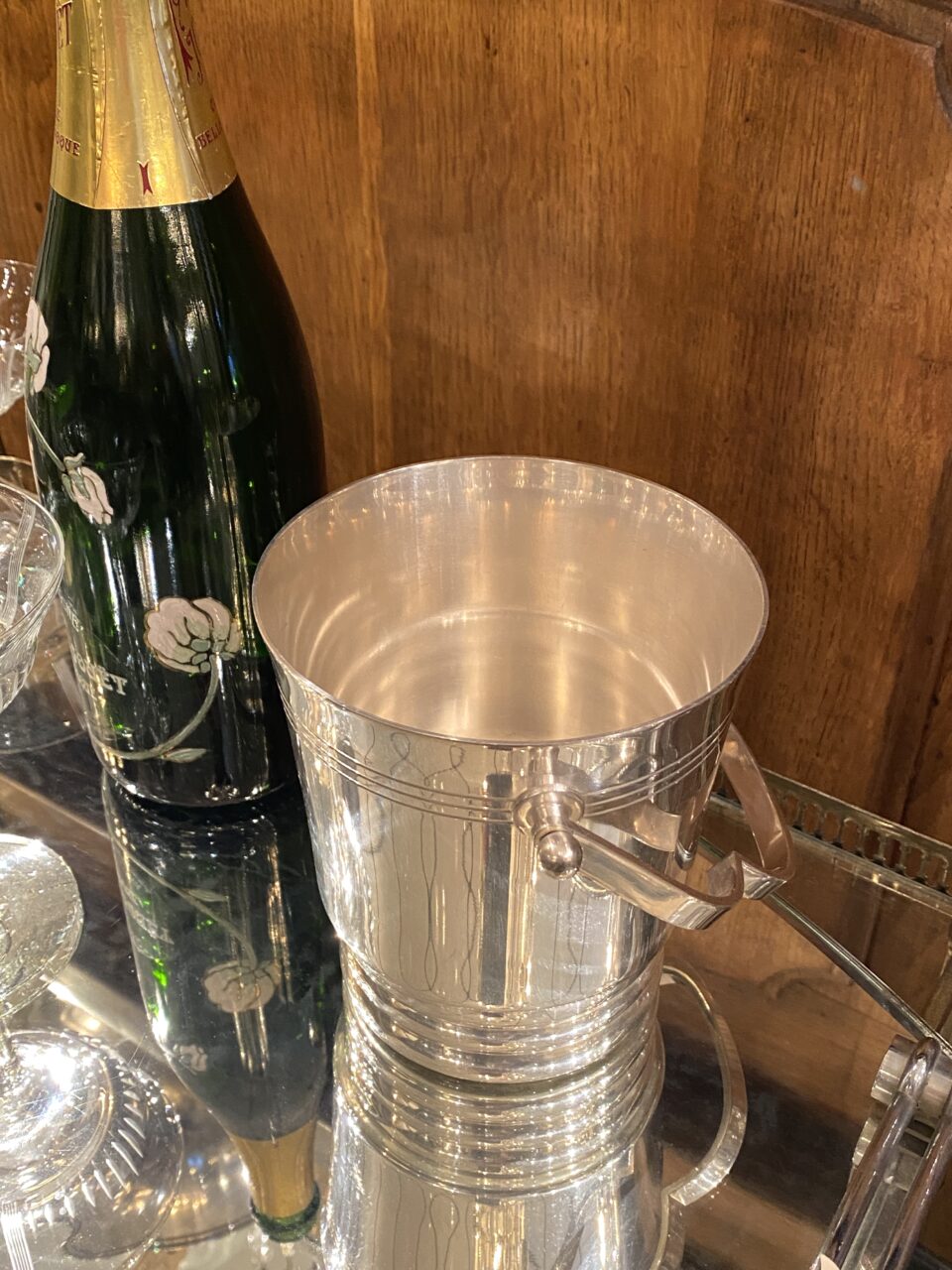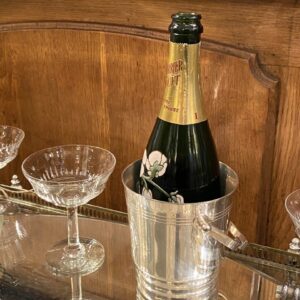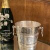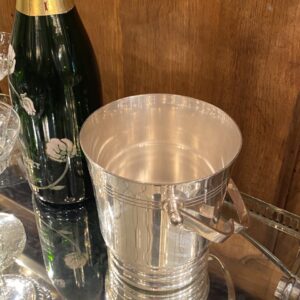 Elegant French ice bucket in silver-plated brass with a beautifully shaped handle. A classic, stylish and timeless design and appears in very good condition.
