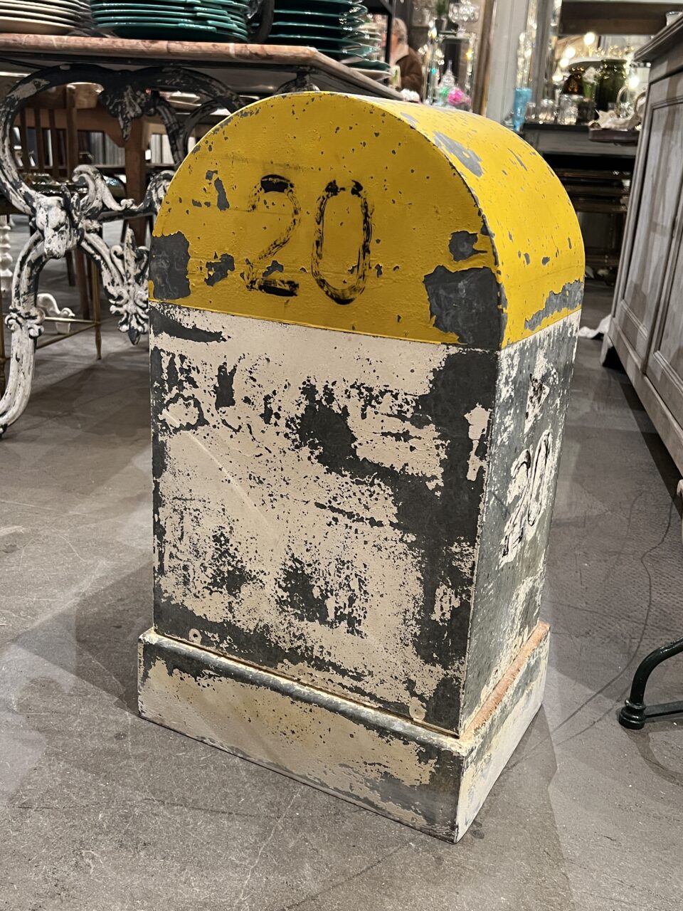 Wonderful old zinc kilometre marker in zinc, originating from the side of a country road in the South of France.