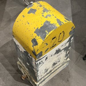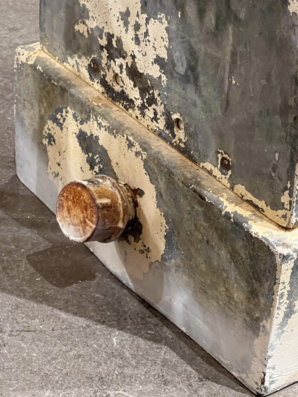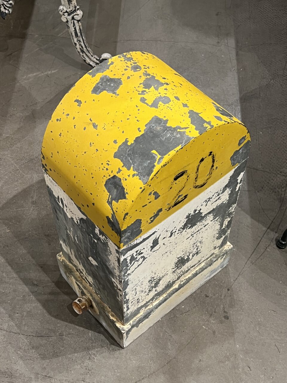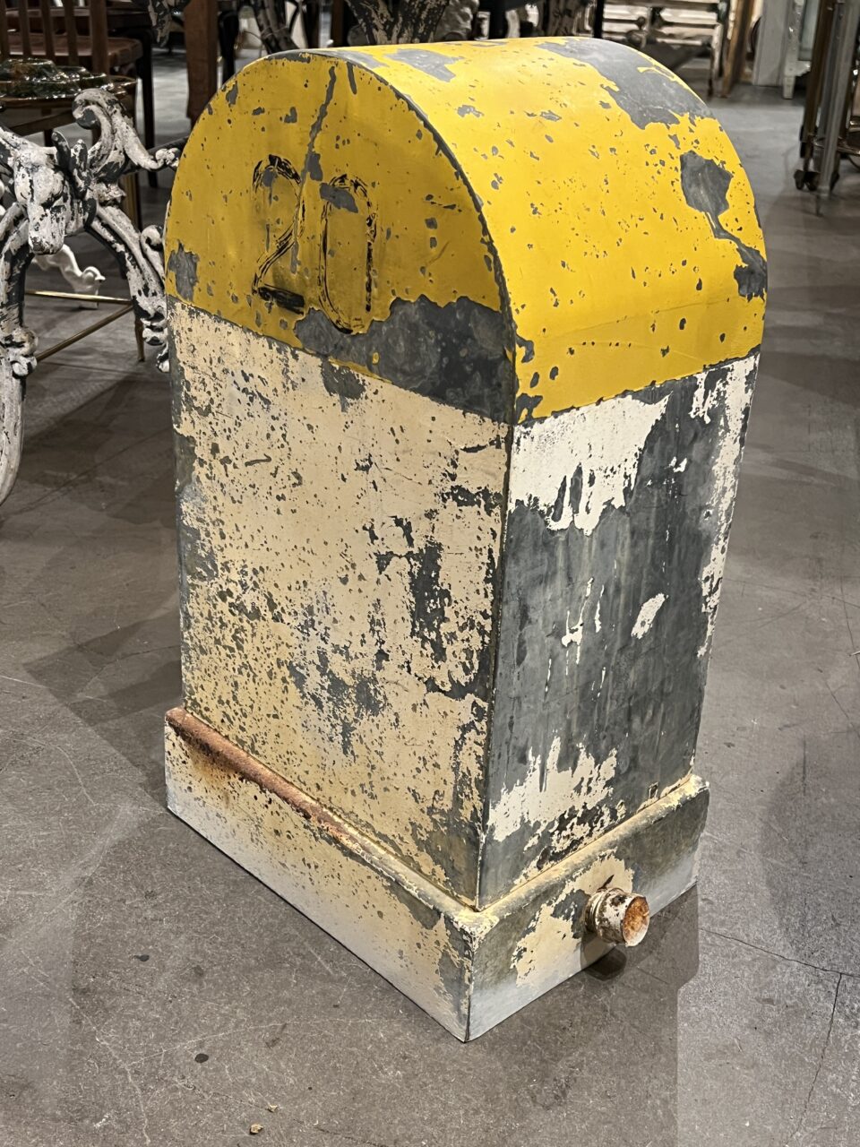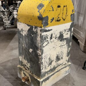 Super rustic object in a funky yellow and grey colour, lots of weathered patina.