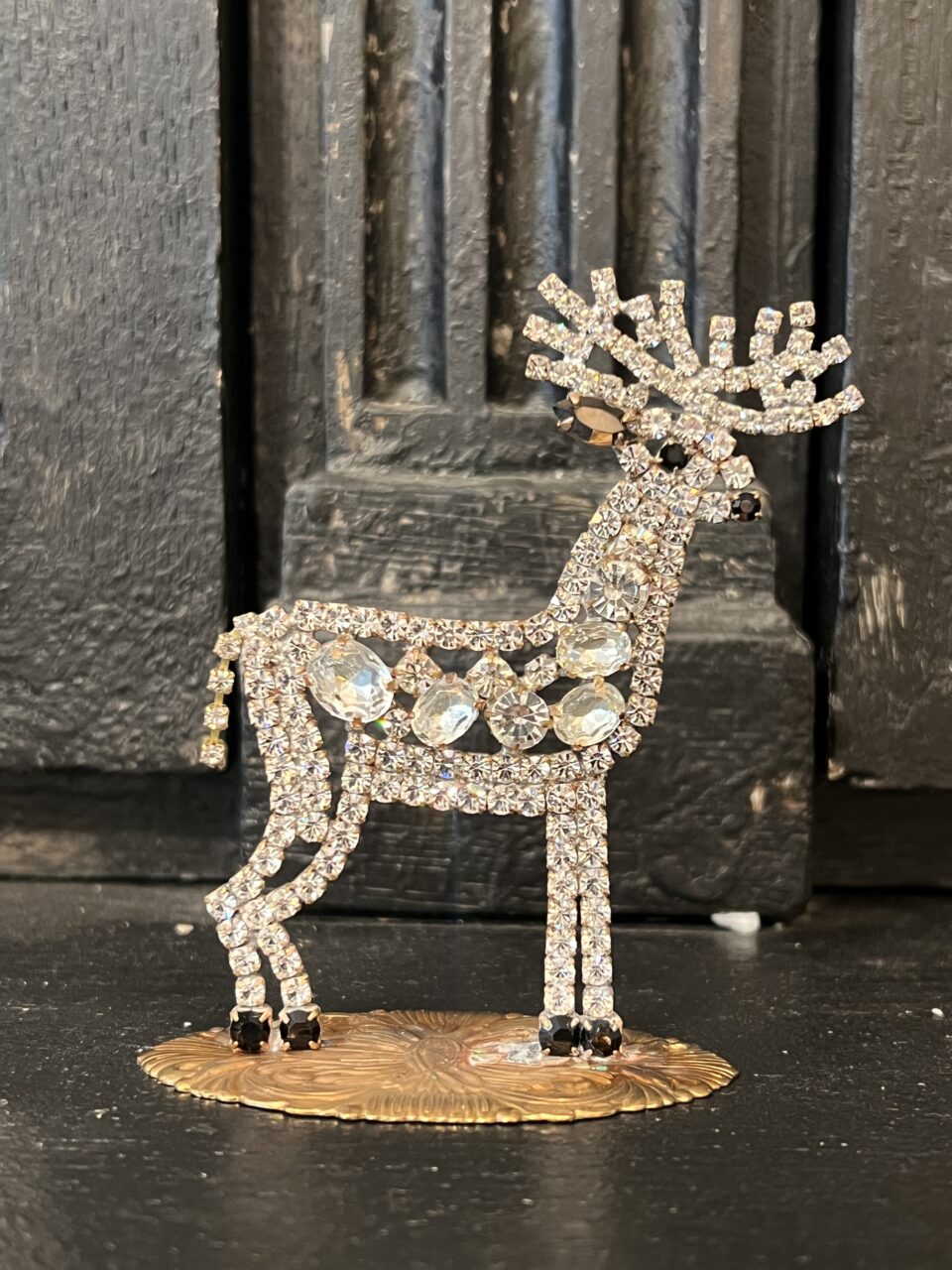 Beautiful rhinestone decorated Christmas reindeer, from Bohemia.