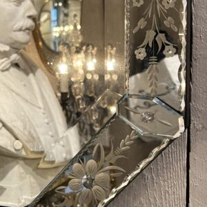 The frame is made of mirrored glass with richly decorated, hand-engraved motifs, typically depicting flowers and leaf ornaments.