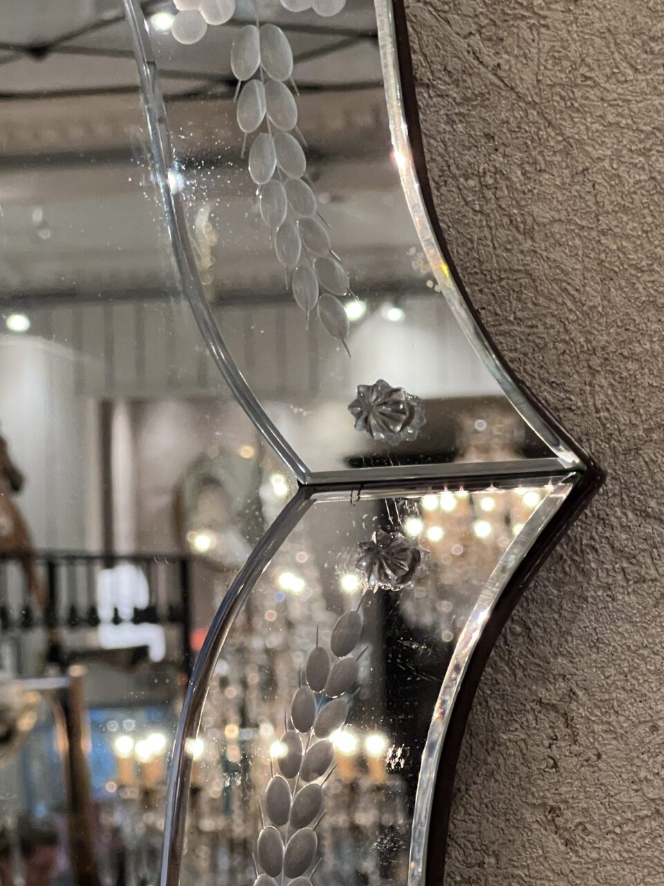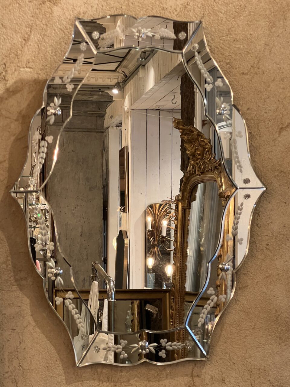 Wonderful old French Venetian mirror from around the 1920s-40s, with beautifully beveled mirrored glass.
