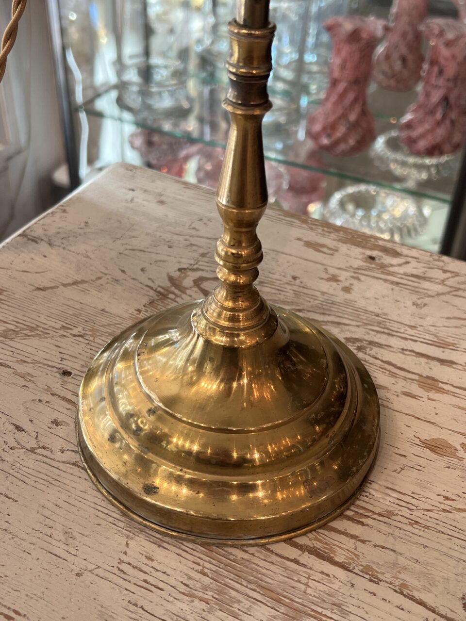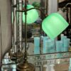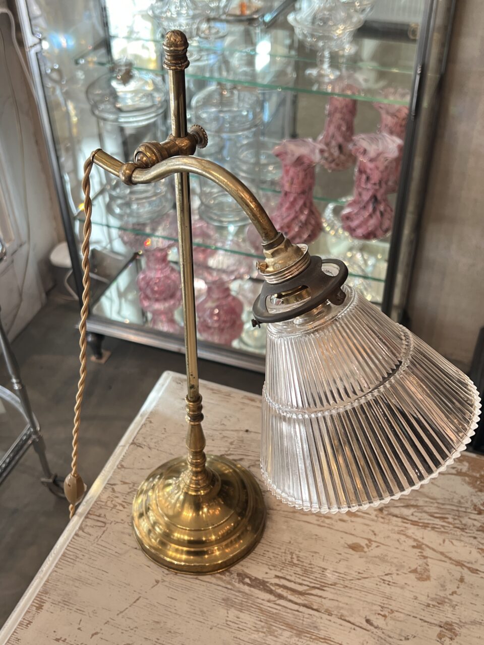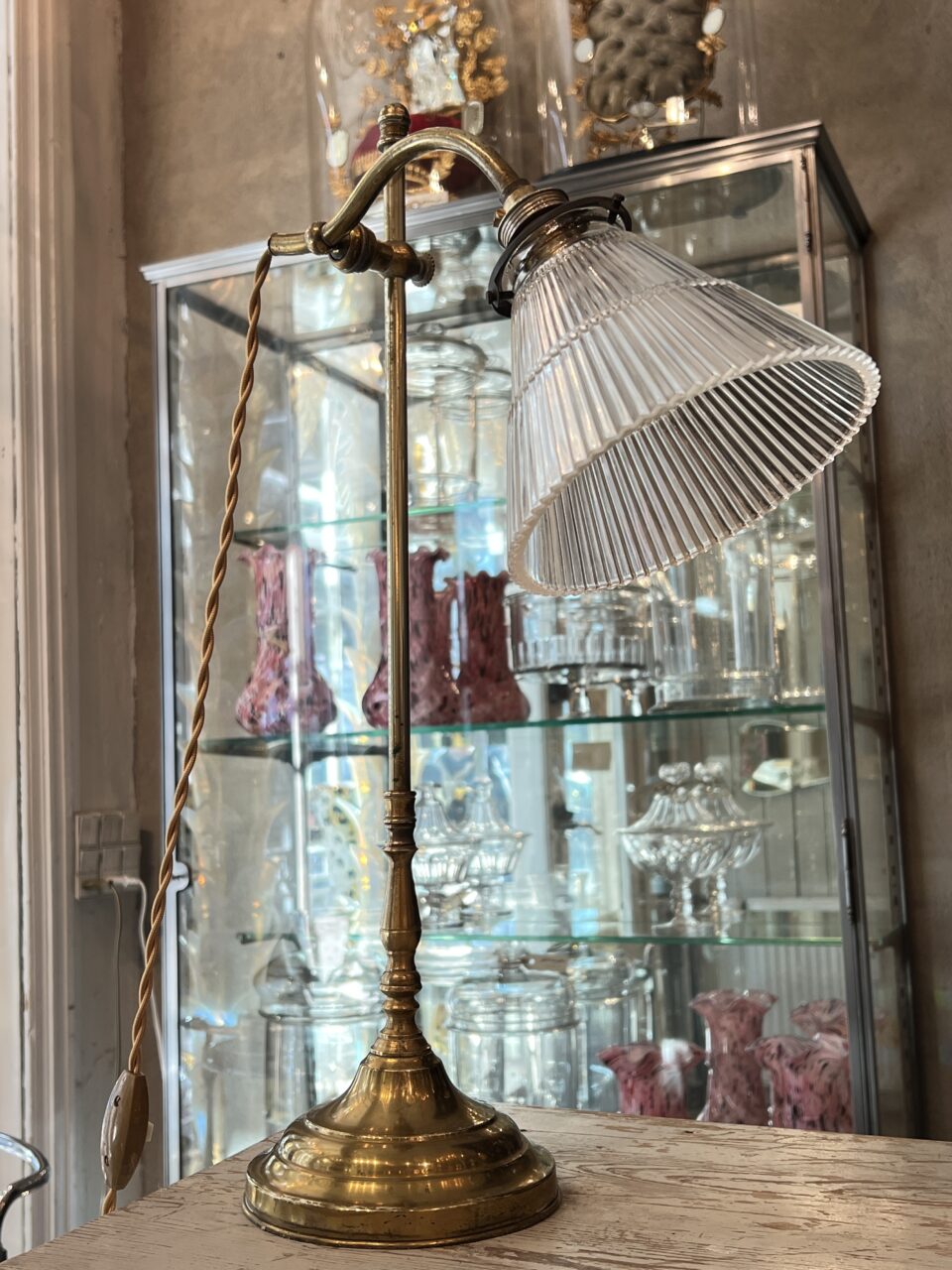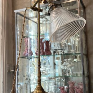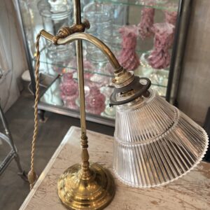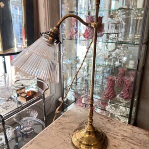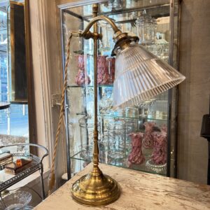 Handsome antique French desk / study lamp in brass, with a beautiful sleek glass lampshade.