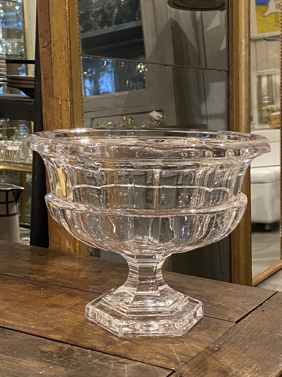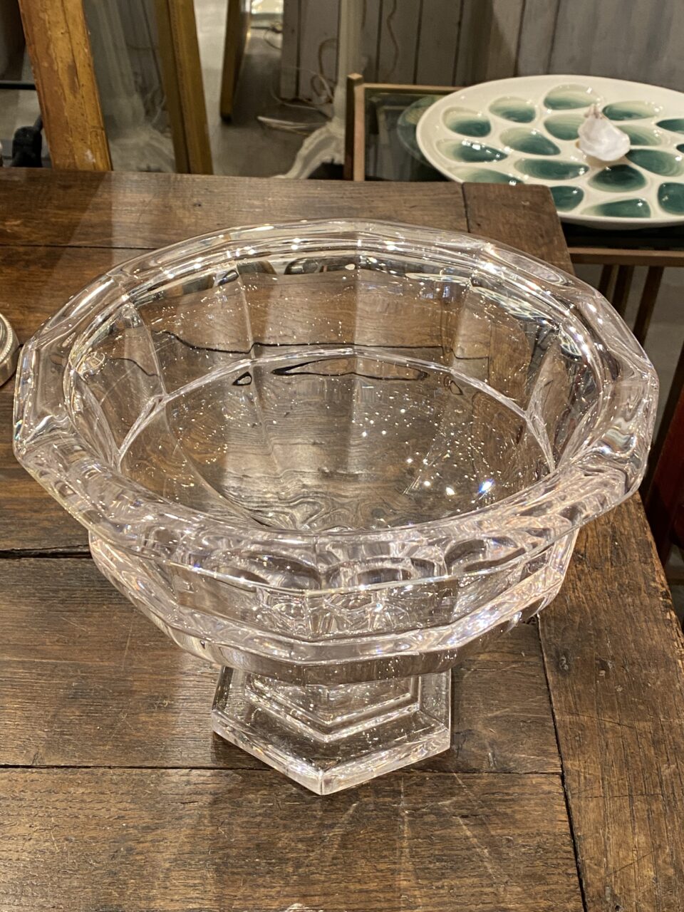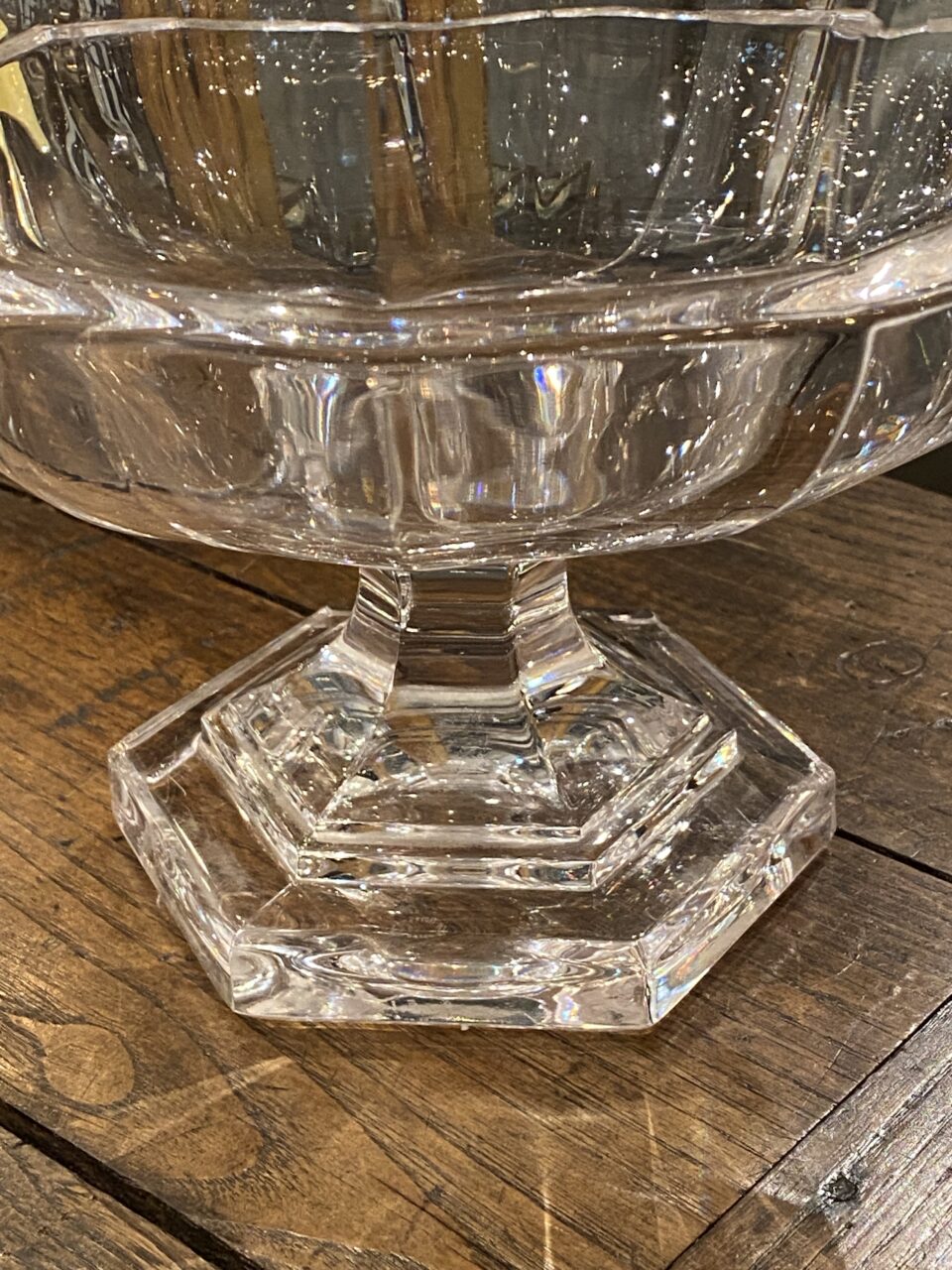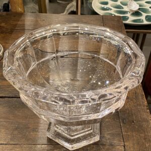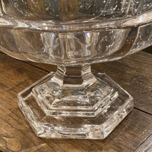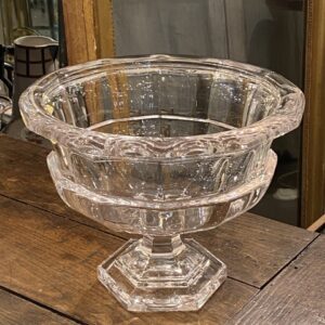 Attractive quality crystal old glass centerpiece/glass bowl elegantly raised on a foot, from France.
