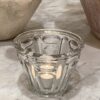 Charming vintage cone-shaped jam jar / bowl in solid quality glass, and with a ridged concave effect on the side. Originally from a French jam and confiture manufacturers, for fruit jellies and jams. Known therefore as a pot à confiture for this reason.