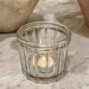 Charming vintage cylindrical shaped jam jar / bowl in solid quality glass, and with a vertical grooved effect on the side. Originally from a French jam and confiture manufacturers, for fruit jellies and jams. Known therefore as a pot à confiture for this reason.