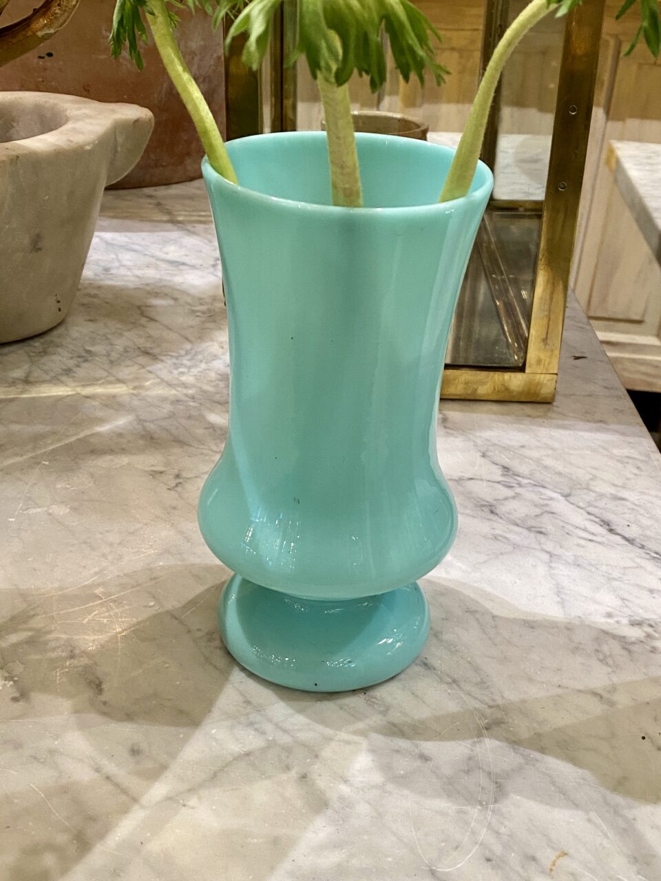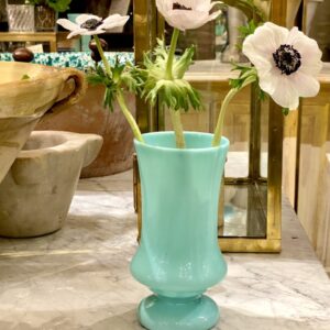 Elegant and cheerful French glass vase made of opaline glass, in a refreshing pastel blue/pale turquoise shade.