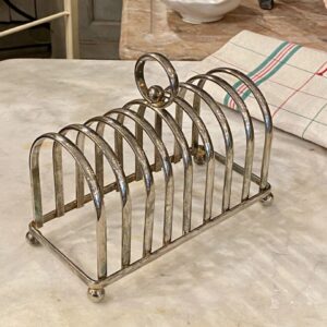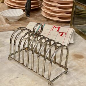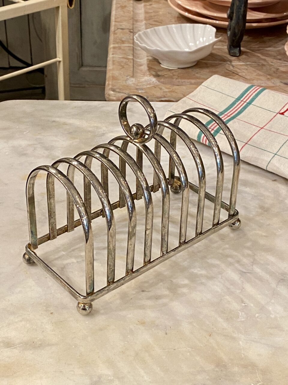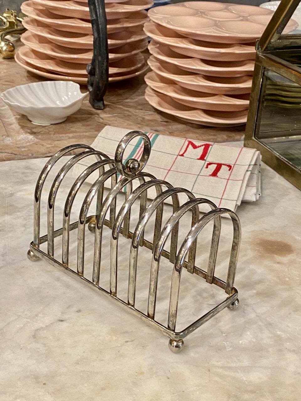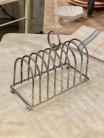 Elegant and large silver plated toast rack (porte a toast), rounded form, resting on small cone-shaped feet and can hold 8 pieces of toast.