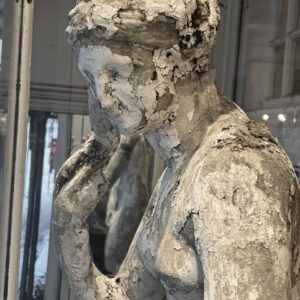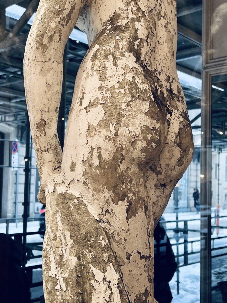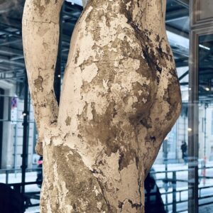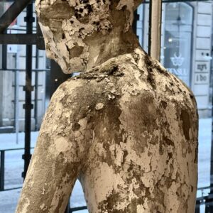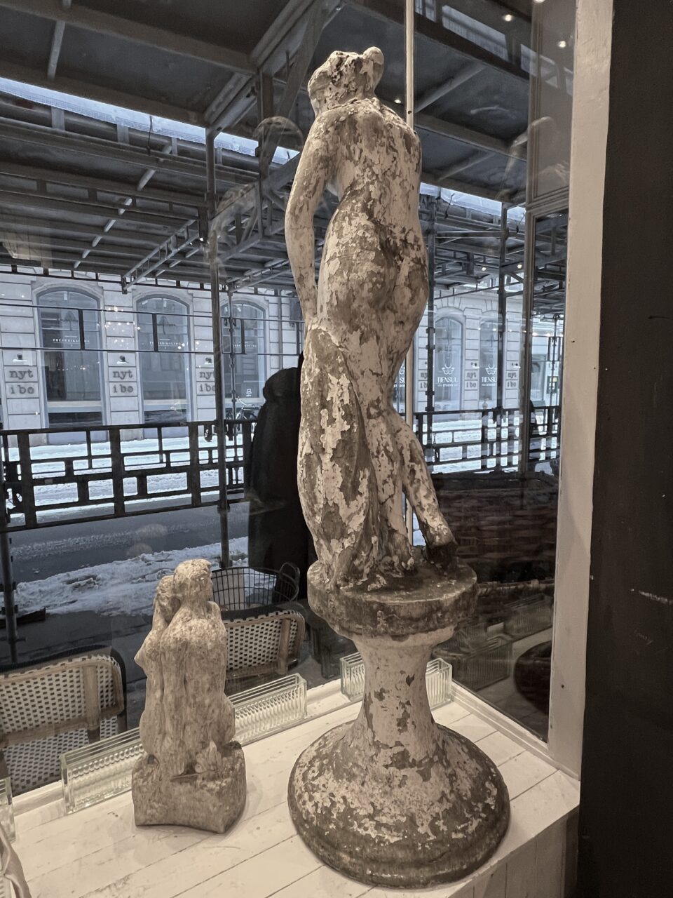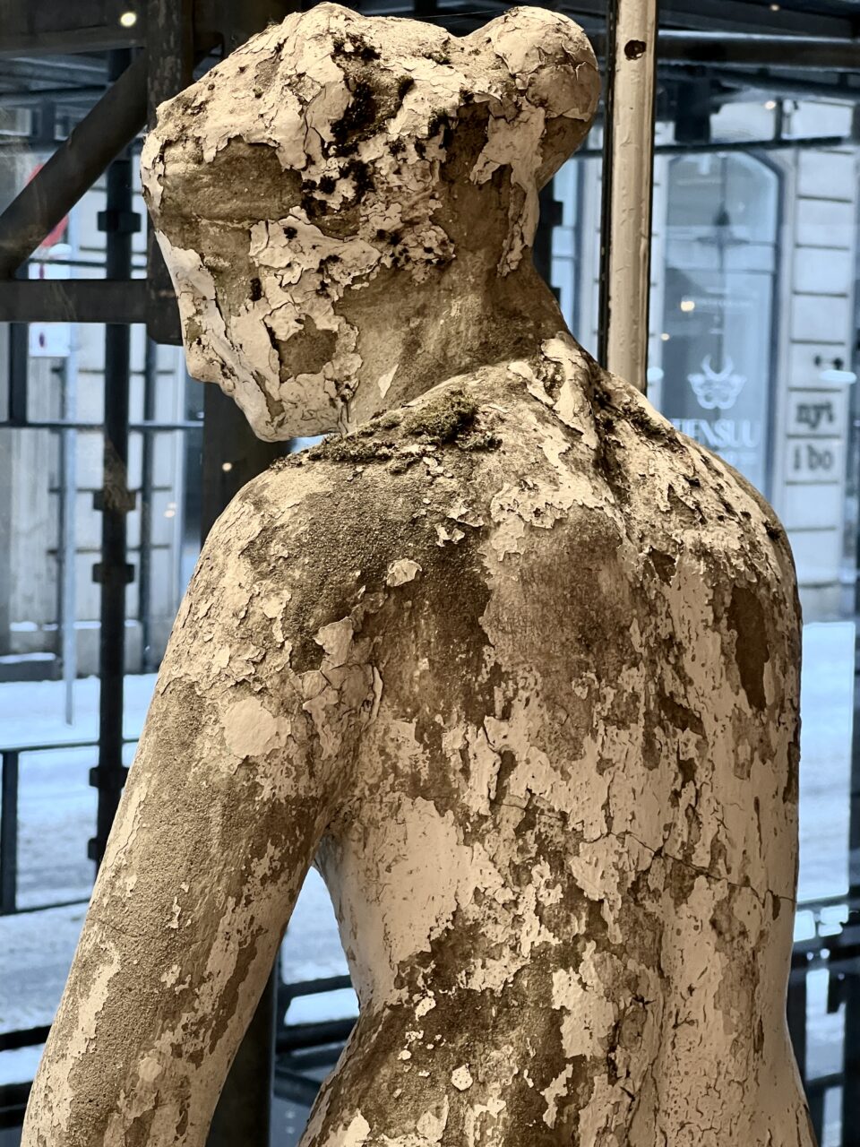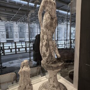 Figuren er en fantastisk støbning af en kvindekrop, stilmæssigt beslægtet med den beskedne venus figur, i en smuk vejrbidt patina.