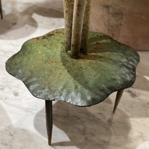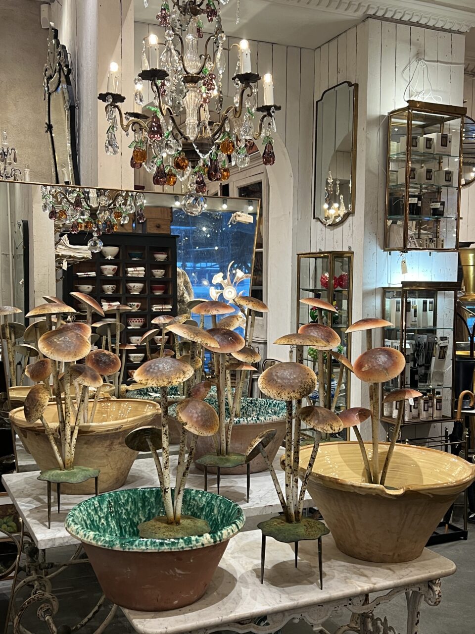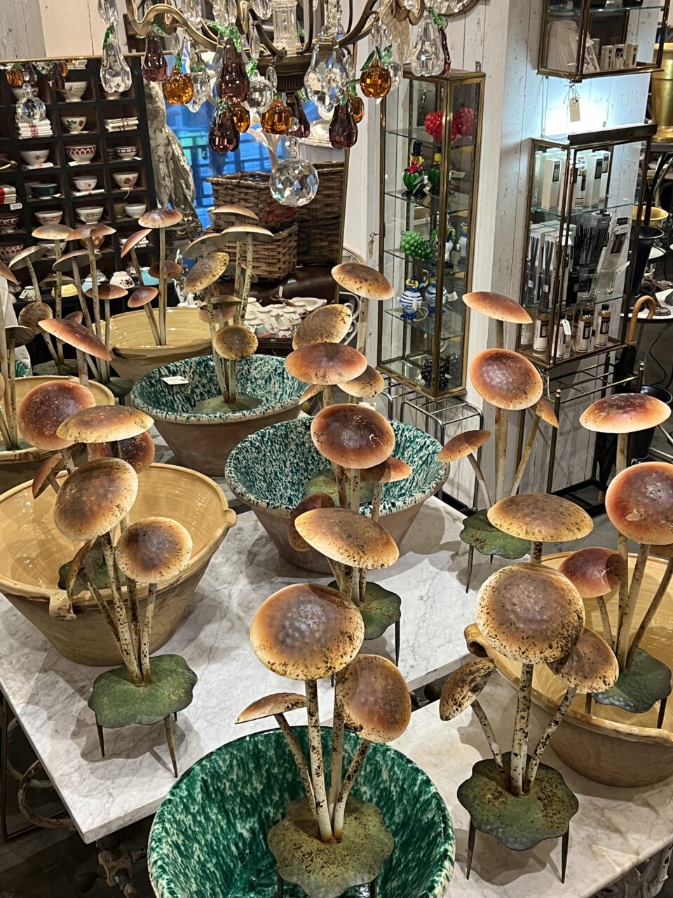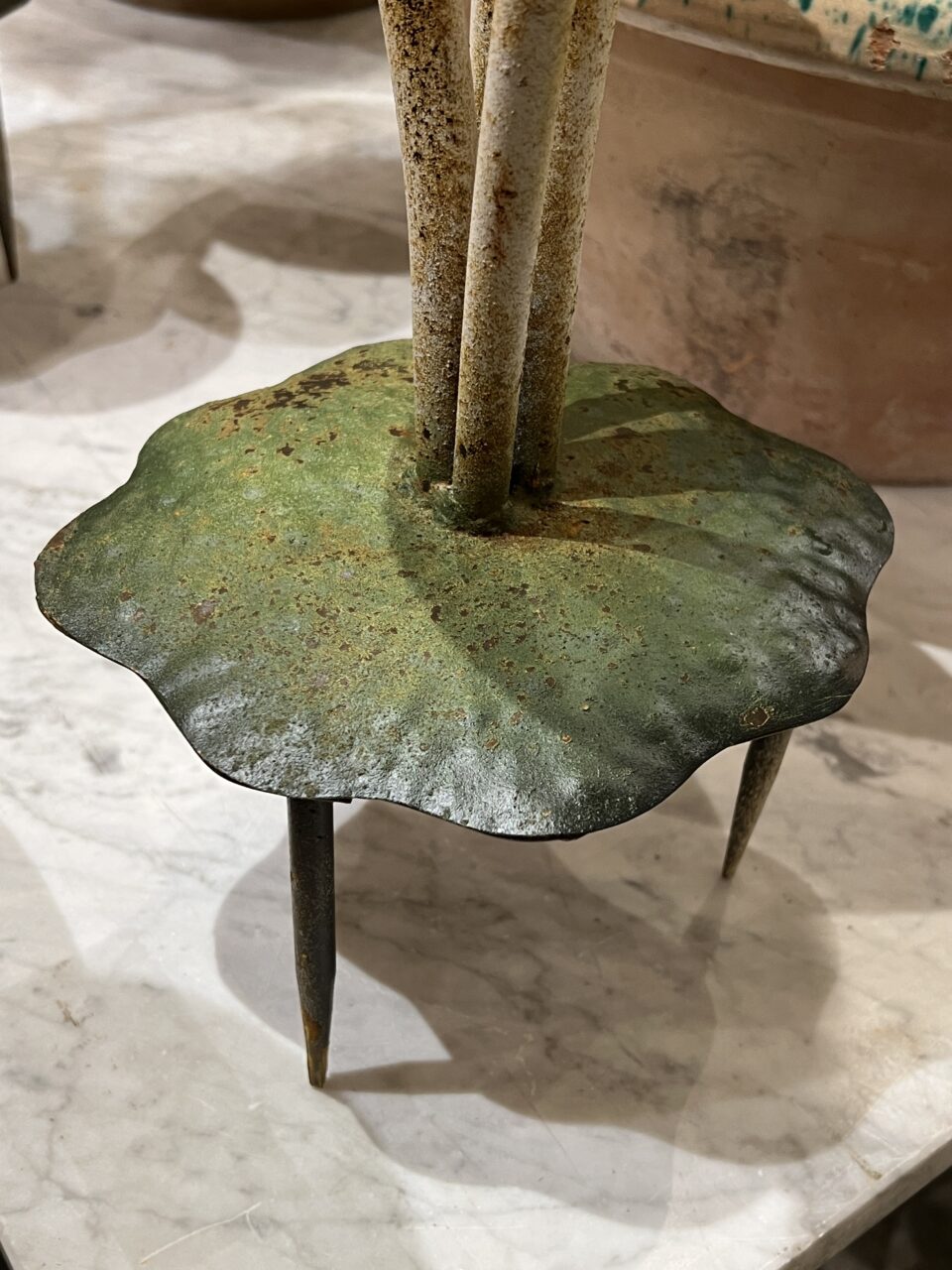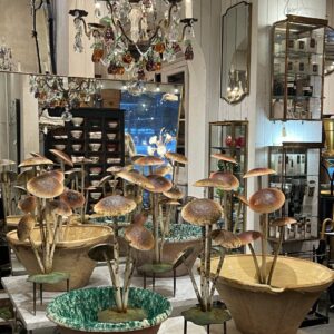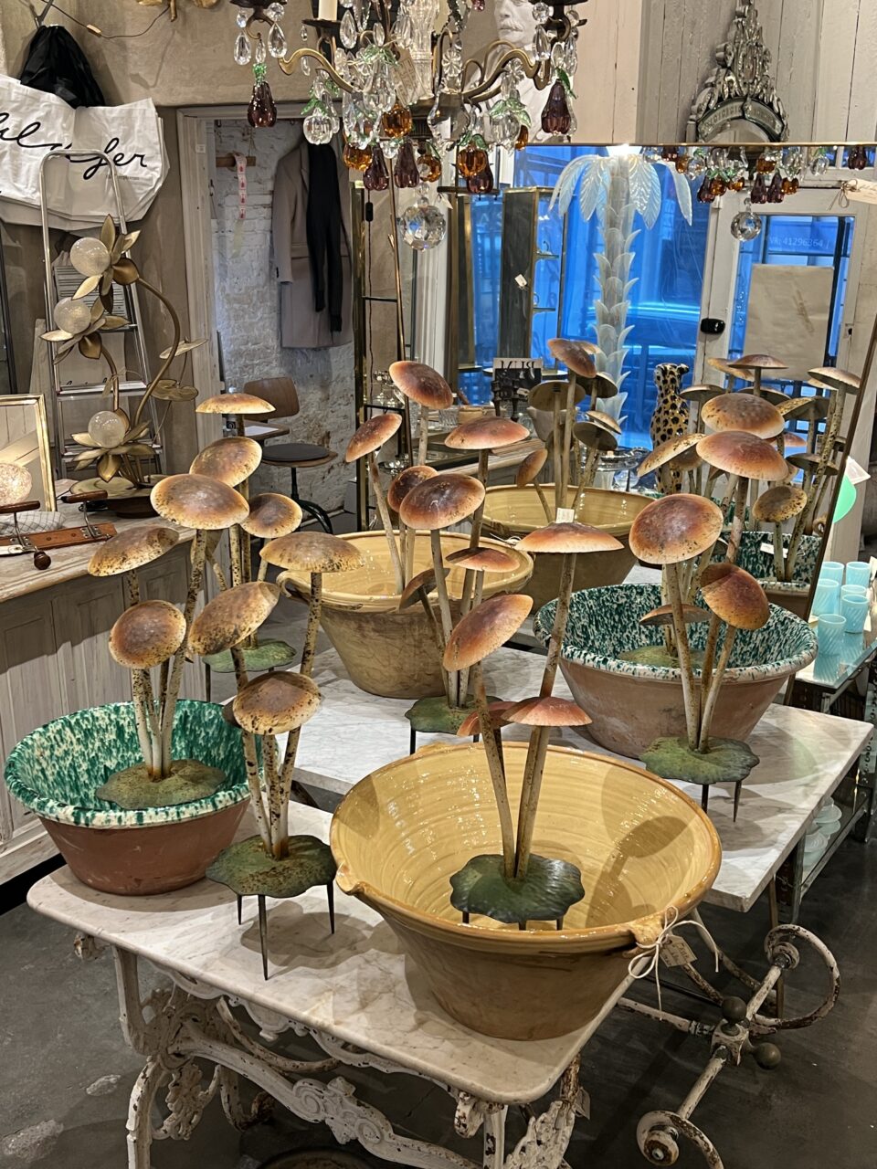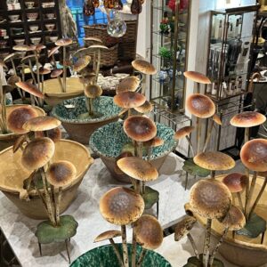 Dekorativ havesvamp i metal, med et rustikt udtryk.