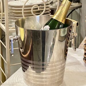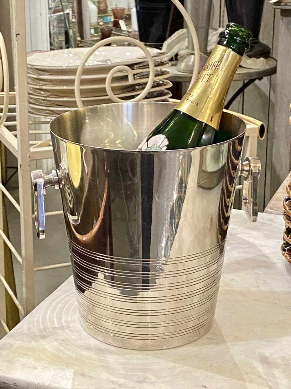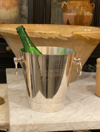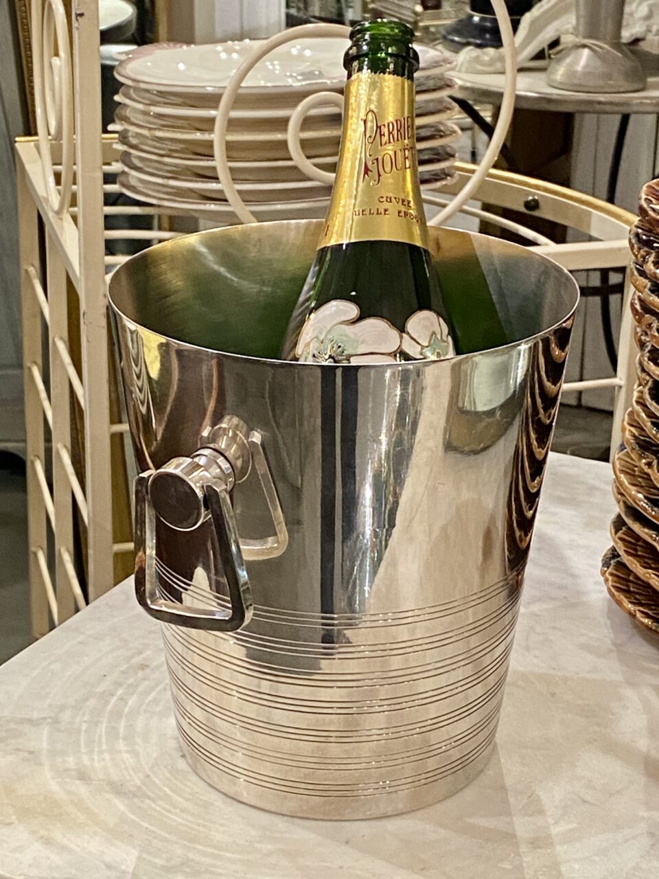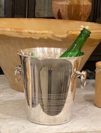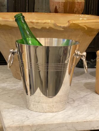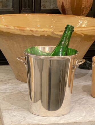 Gammel fransk champagnekøler i pletsølv , med flotte greb på siderne.