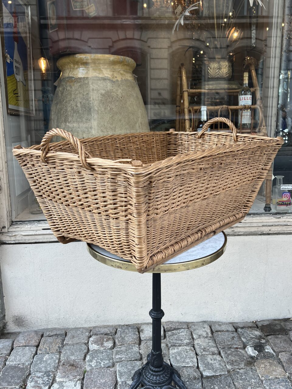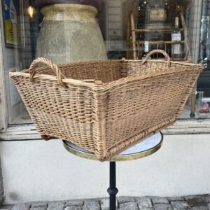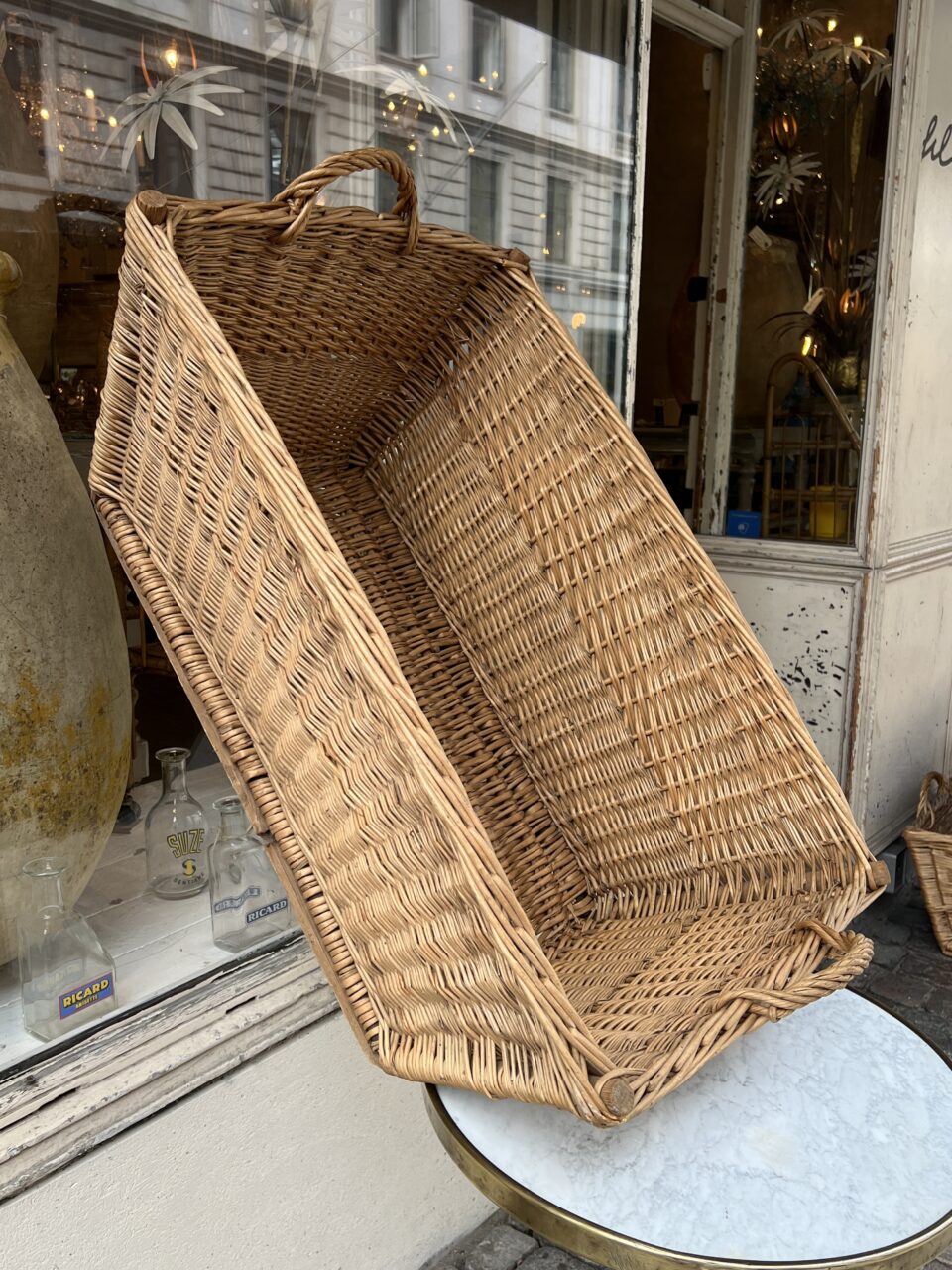 En smuk og nostalgisk kurv, som blev brugt som vasketøjskurv, når sengetøjet og duge skulle hænges op på tørresnoren ud i haven eller i baggården.