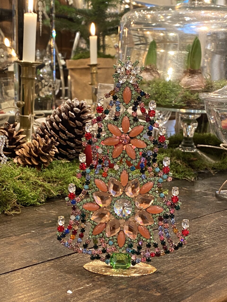 Smukt rhinstenspyntet juletræ, fra Böhmen i Tjekkiet.