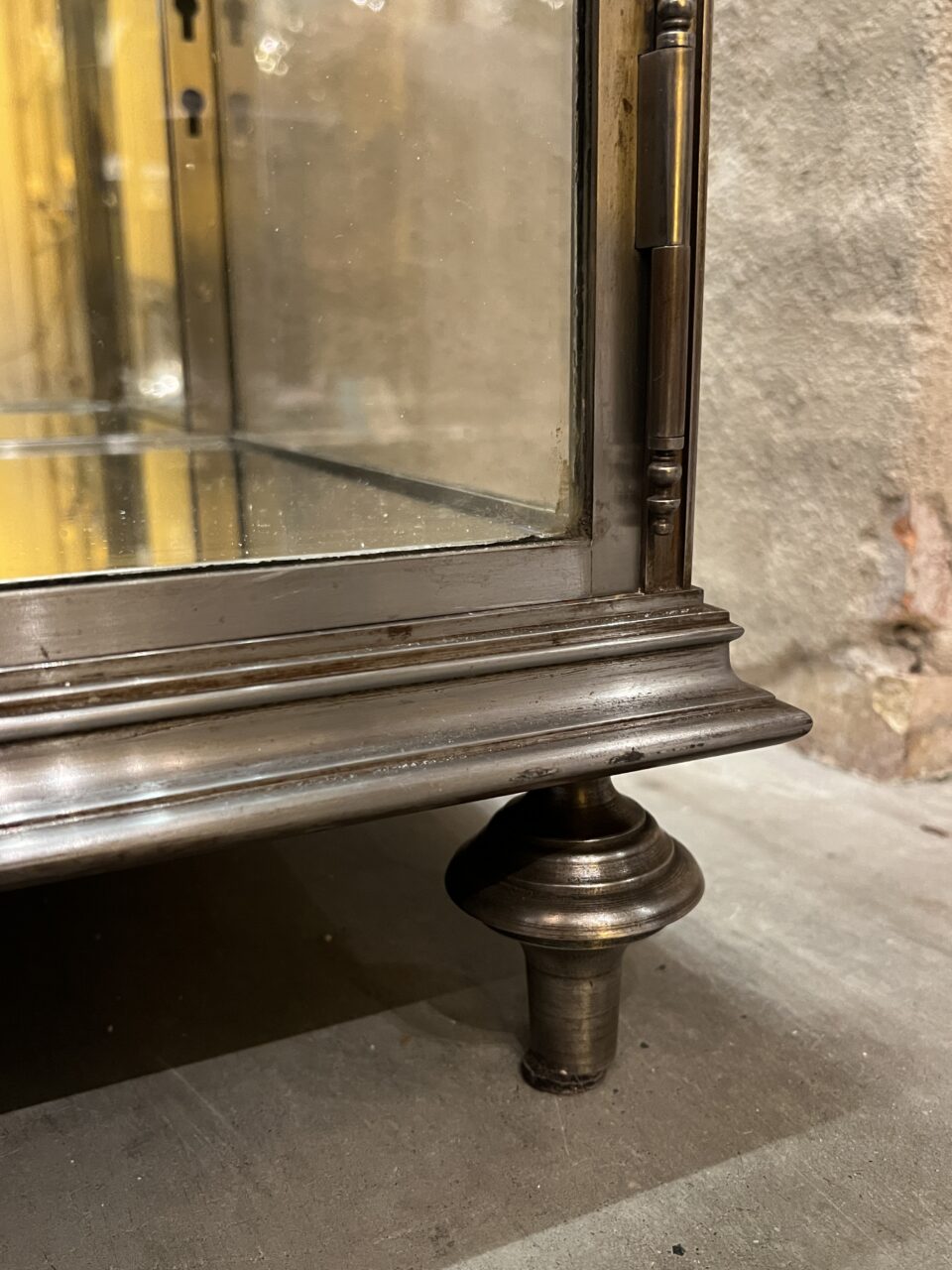 Fransk art deco vitrineskab , i forniklet messing, fra omkring 1930 erne.