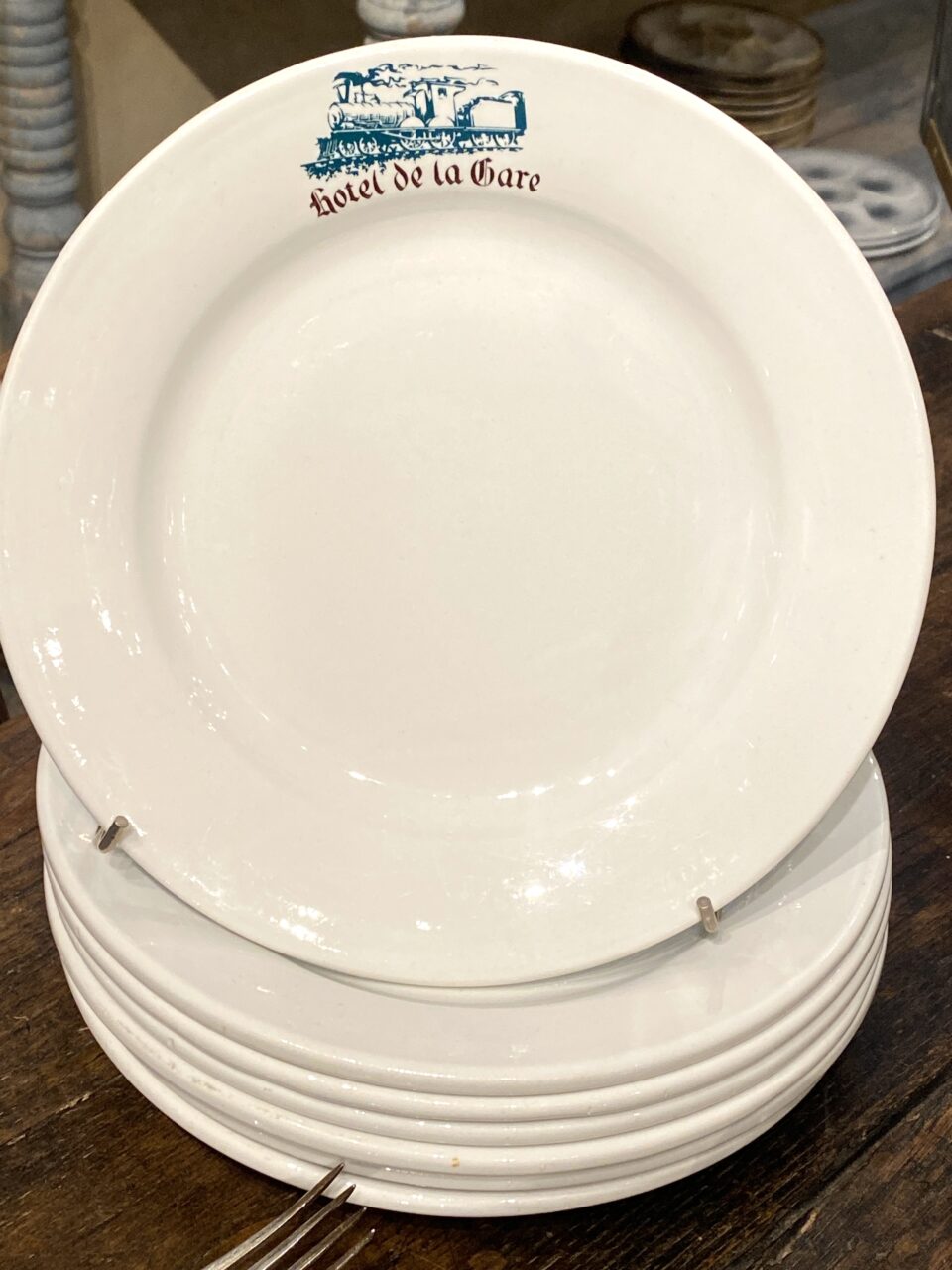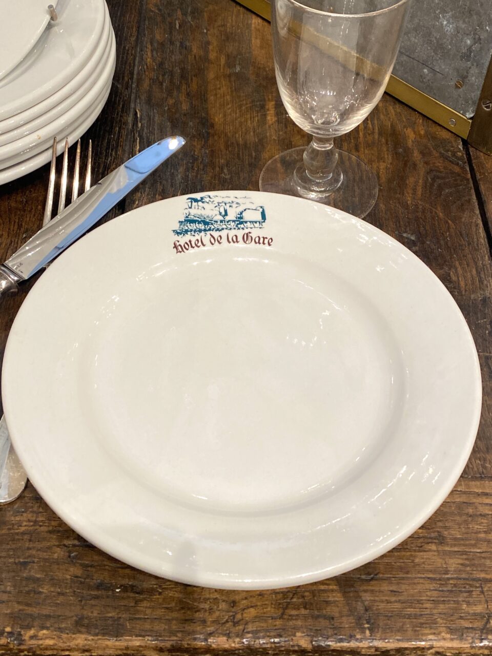 Charmerende gammel fransk bistro middagstallerken fremstillet Jern Porcelæn, som stammer fra et hotel i Frankrig.