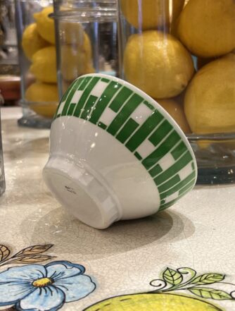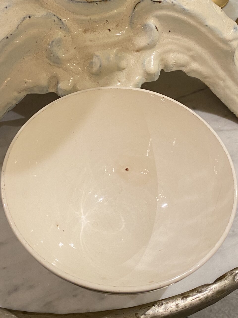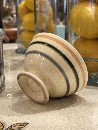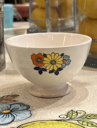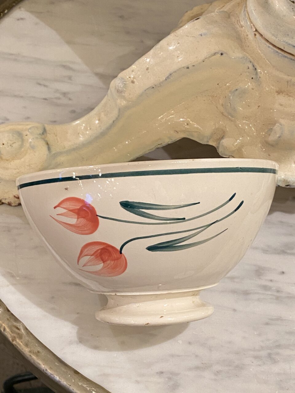 Charmerende stor gammel fransk Café au Lait skål i fajance, som igennem mange år har været anvendt til morgenkaffen i Frankrig. Disse skåle kaldes på fransk Bol, og emmer af stemning og autencitet.