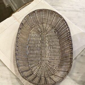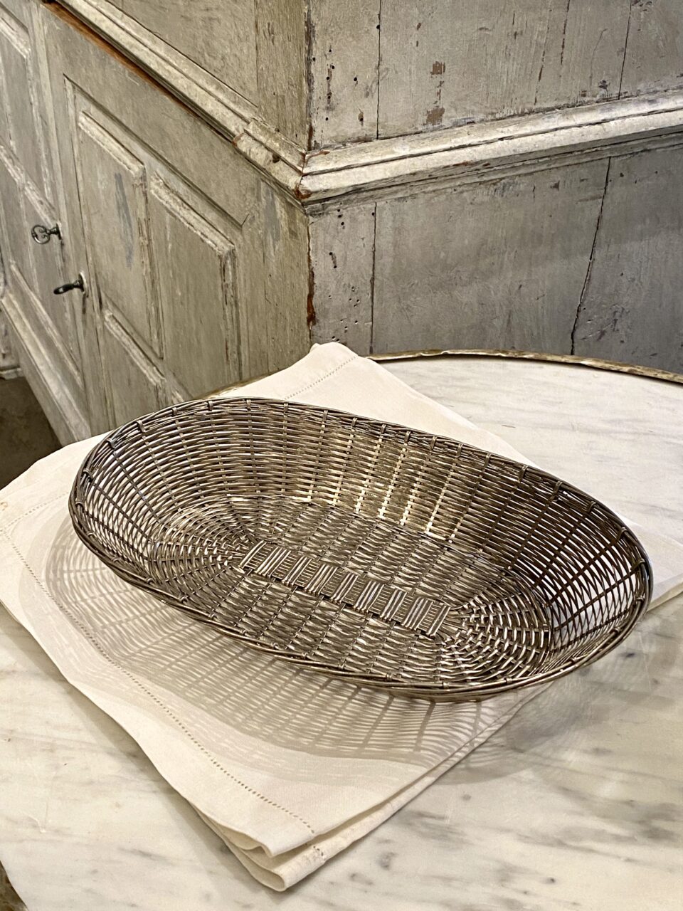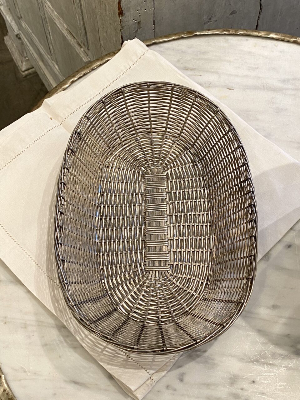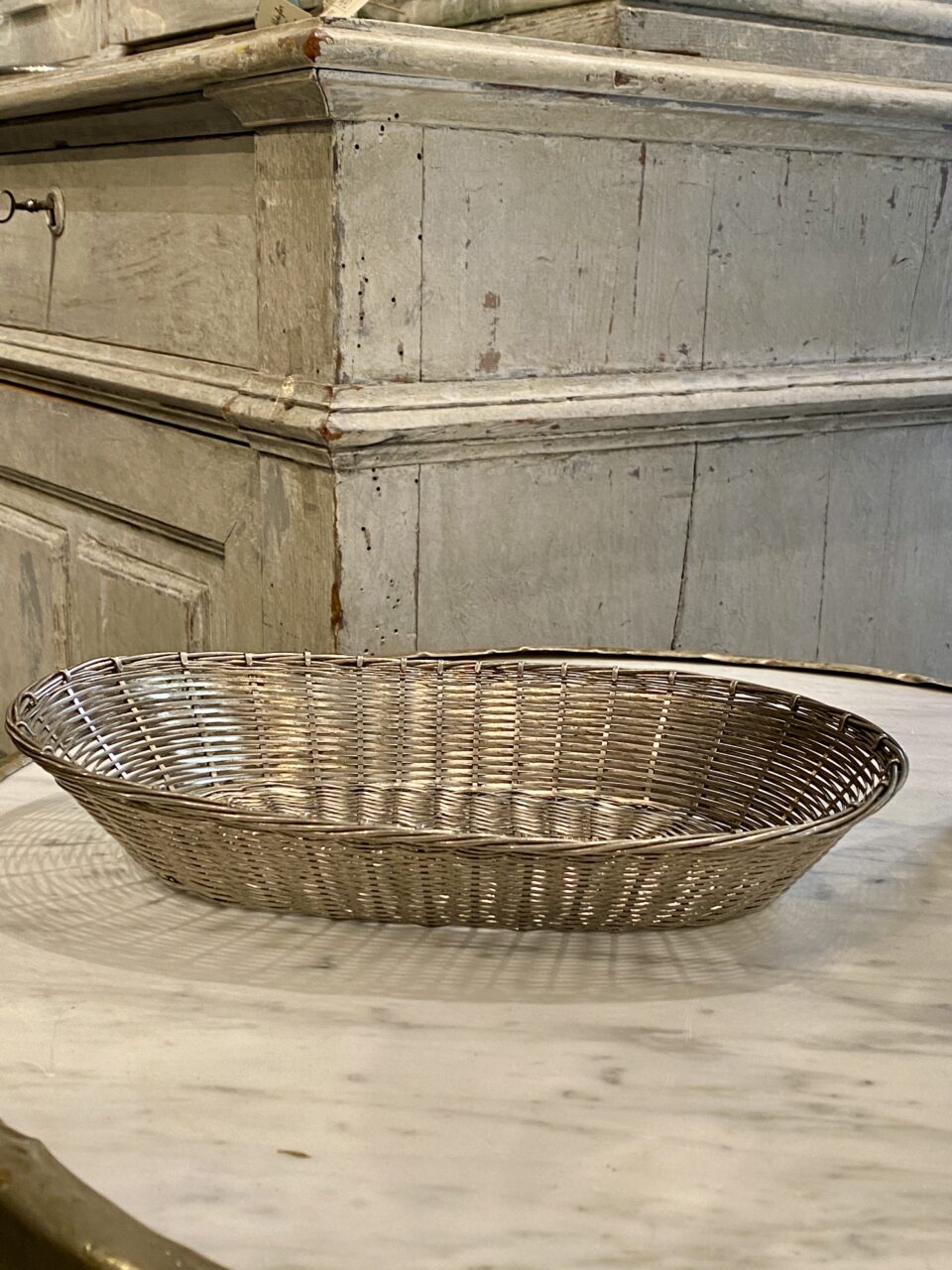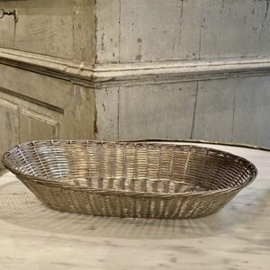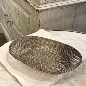 Charmerende gammel fransk oval brødkurv i forsølvet flet. Kurven perfekt til servering af brød og flûtes eller til opbevaring af små frugter og grøntsager i køkkenet.