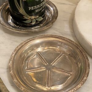 Gammel fransk flaskebakke/coaster i forsølvet messing med flotte dekorationer.