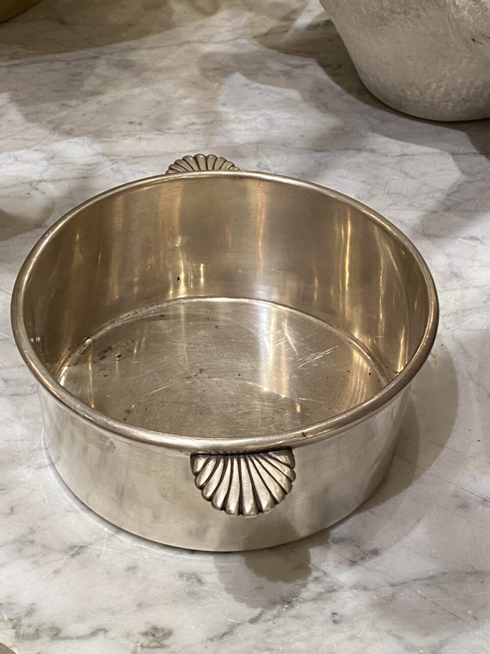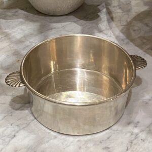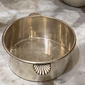 Smuk gammel fransk skål i pletsølv med elegante palmette formet greb på siderne.