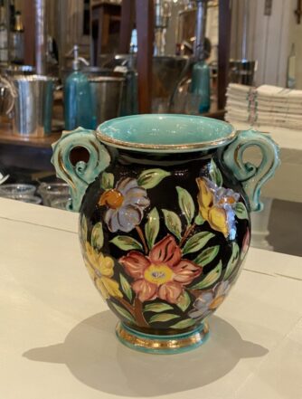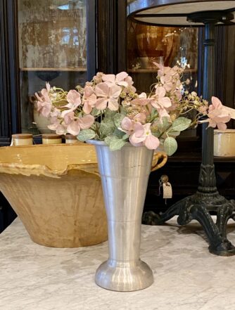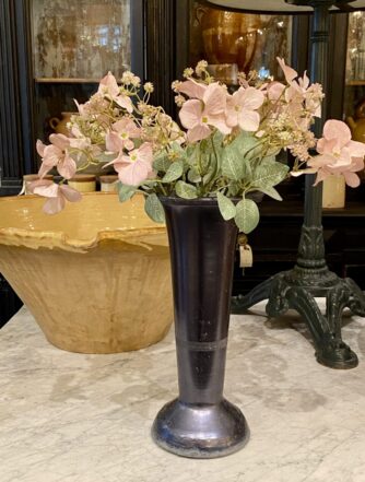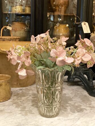 Arrangere din blomsterbuket i denne høje, pokalformet gamle fransk “mormor” vase, der er fremstillet i presset klart glas, tilbage i 1950’erne.