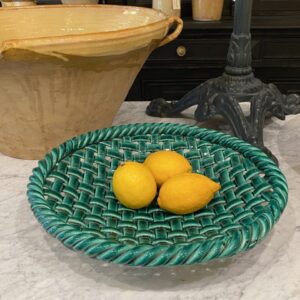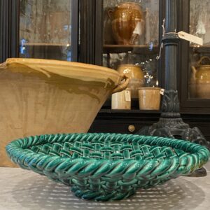 Stort håndlavet fransk fad fremstillet i keramik fra omkring 1950’erne, sandsynligvis produceret i den berømte keramikby Vallauris i sydfrankrig.