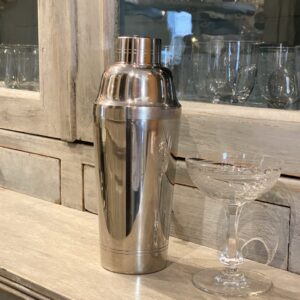 Stor flot gammel fransk forsølvet 3-delt Cobbler Shaker/cocktailshaker med indbygget si, i elegant formgivning.