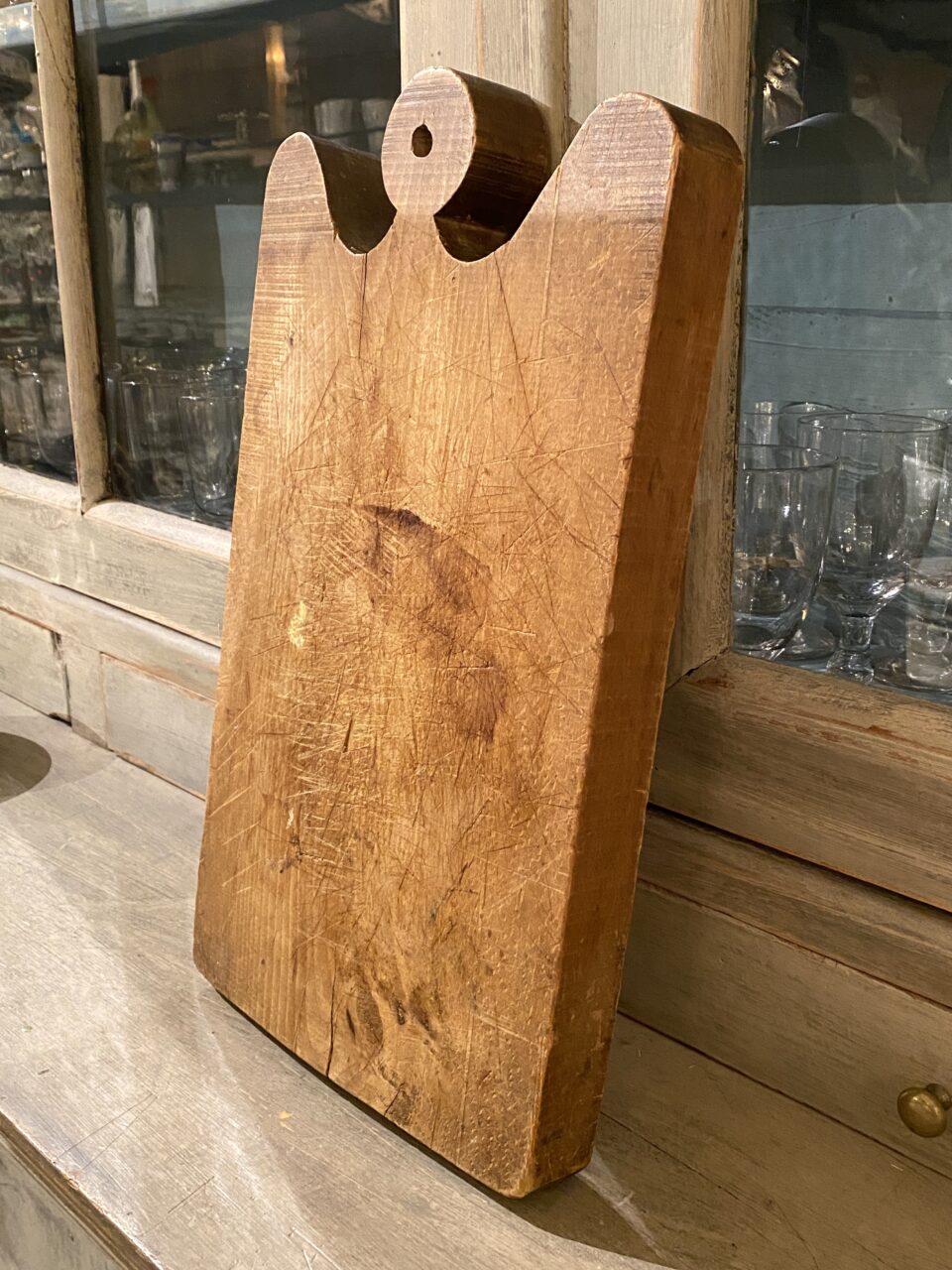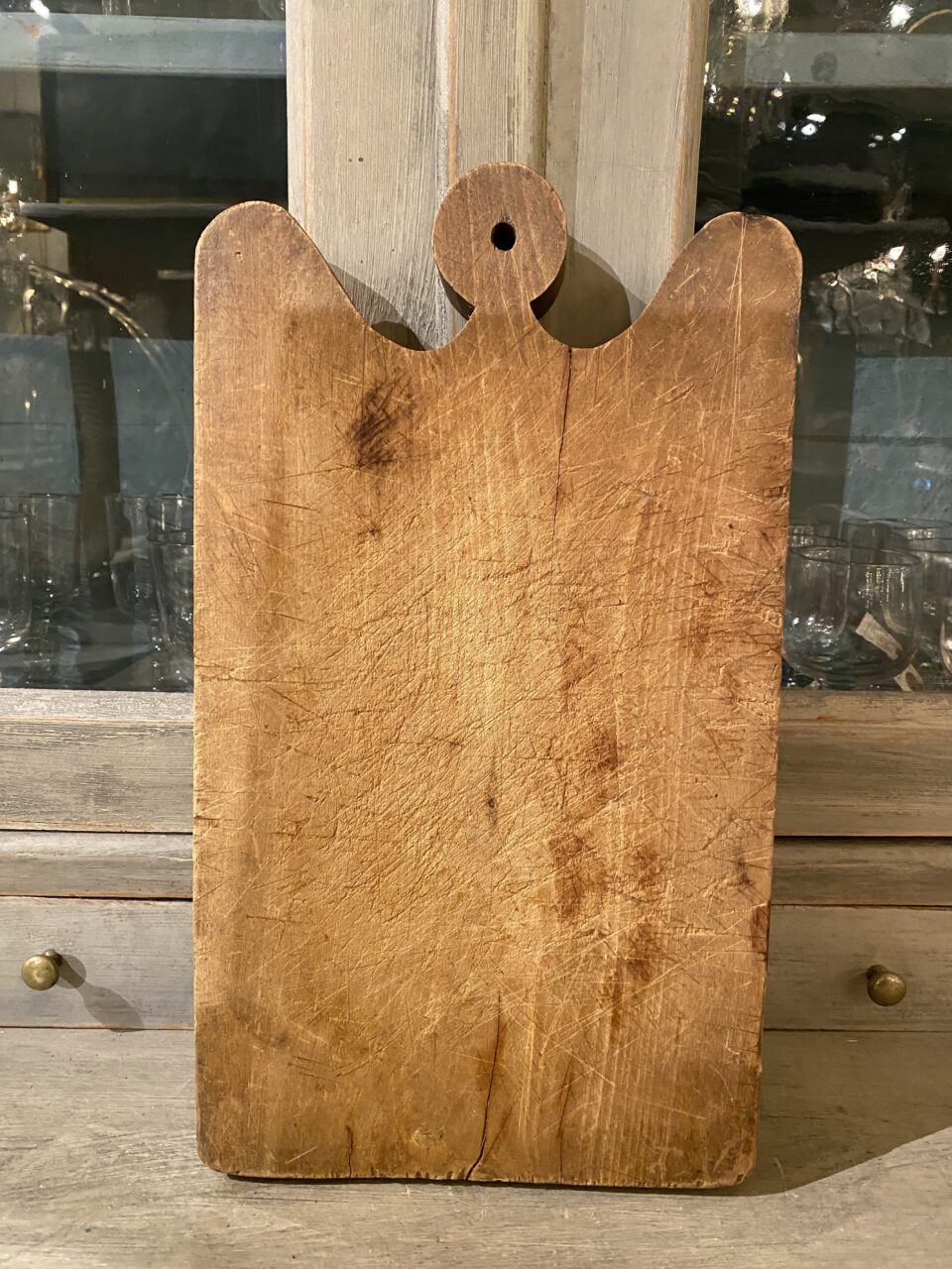 Rustikt og landligt gammelt skærebræt fra Frankrig godt patineret og efter. Brættet kan bruges både som skærebræt eller til servering af fx. tapas og oste.