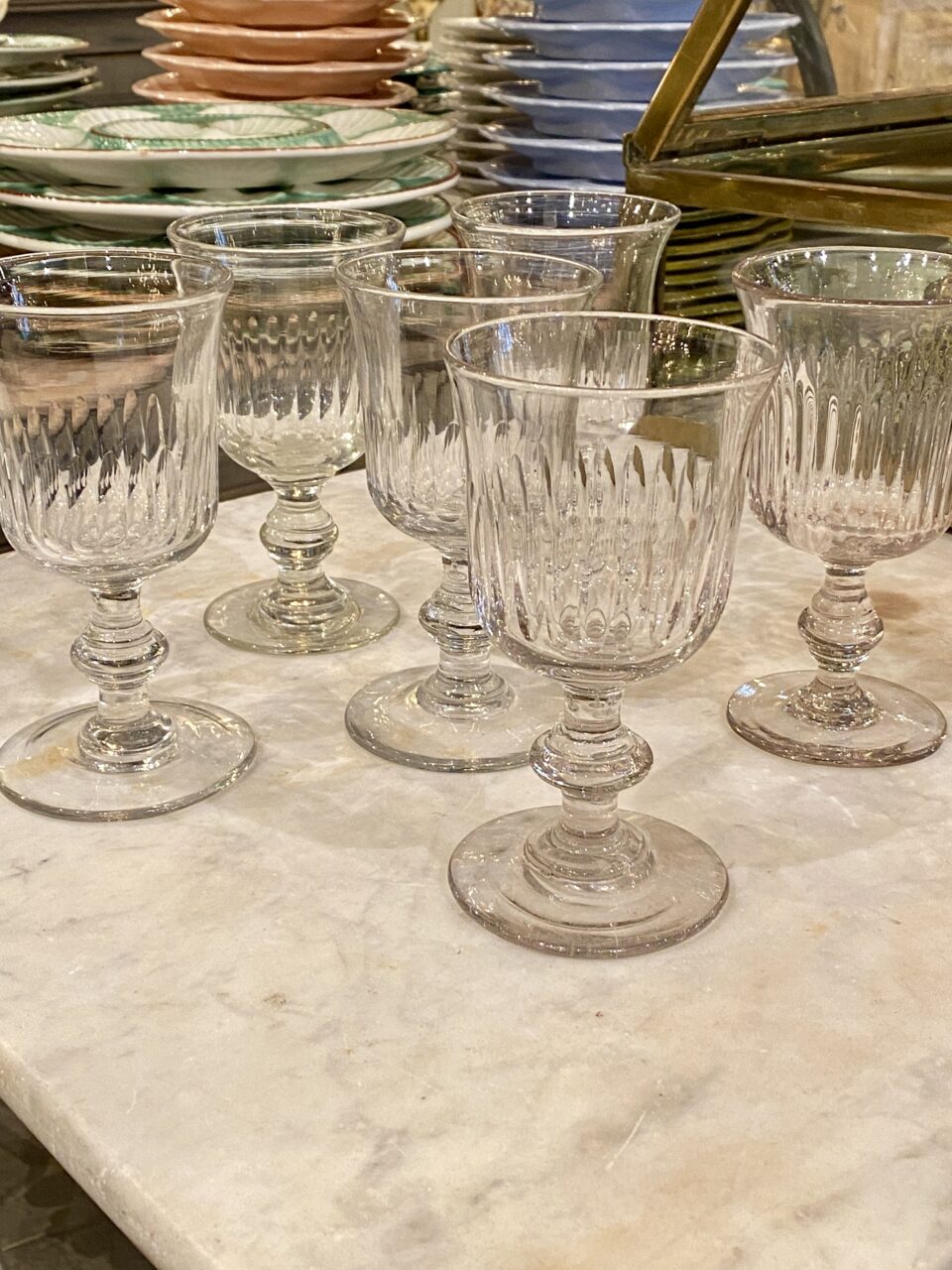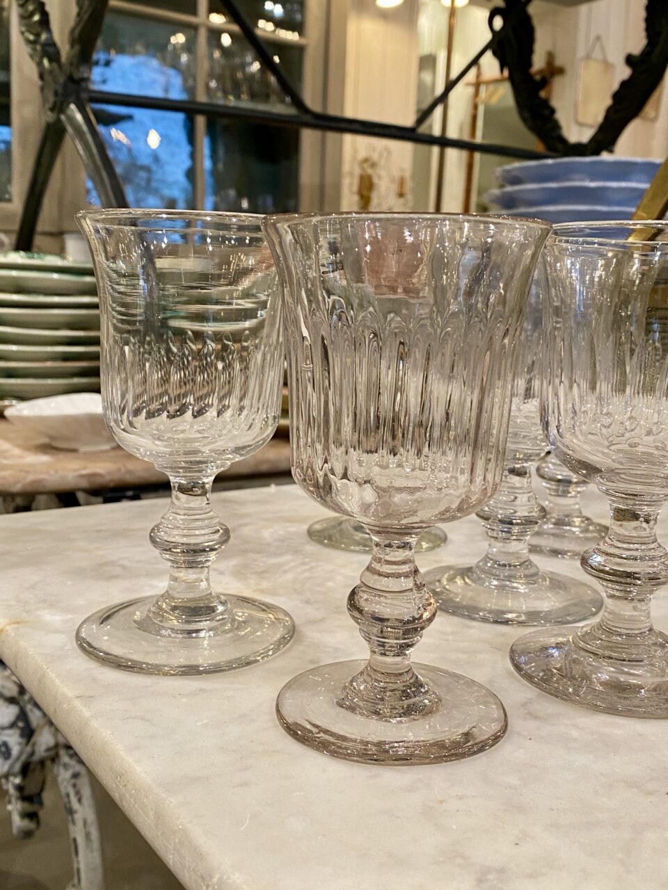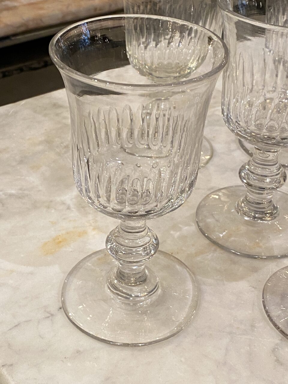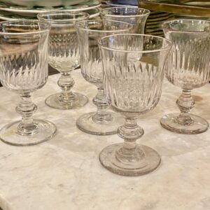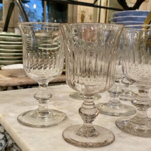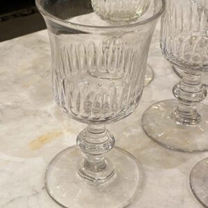 Smukt gammelt fransk mundblæst vinglas i tulipan form med fine slibninger på glasset og flot udformet stilk.