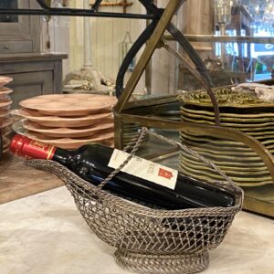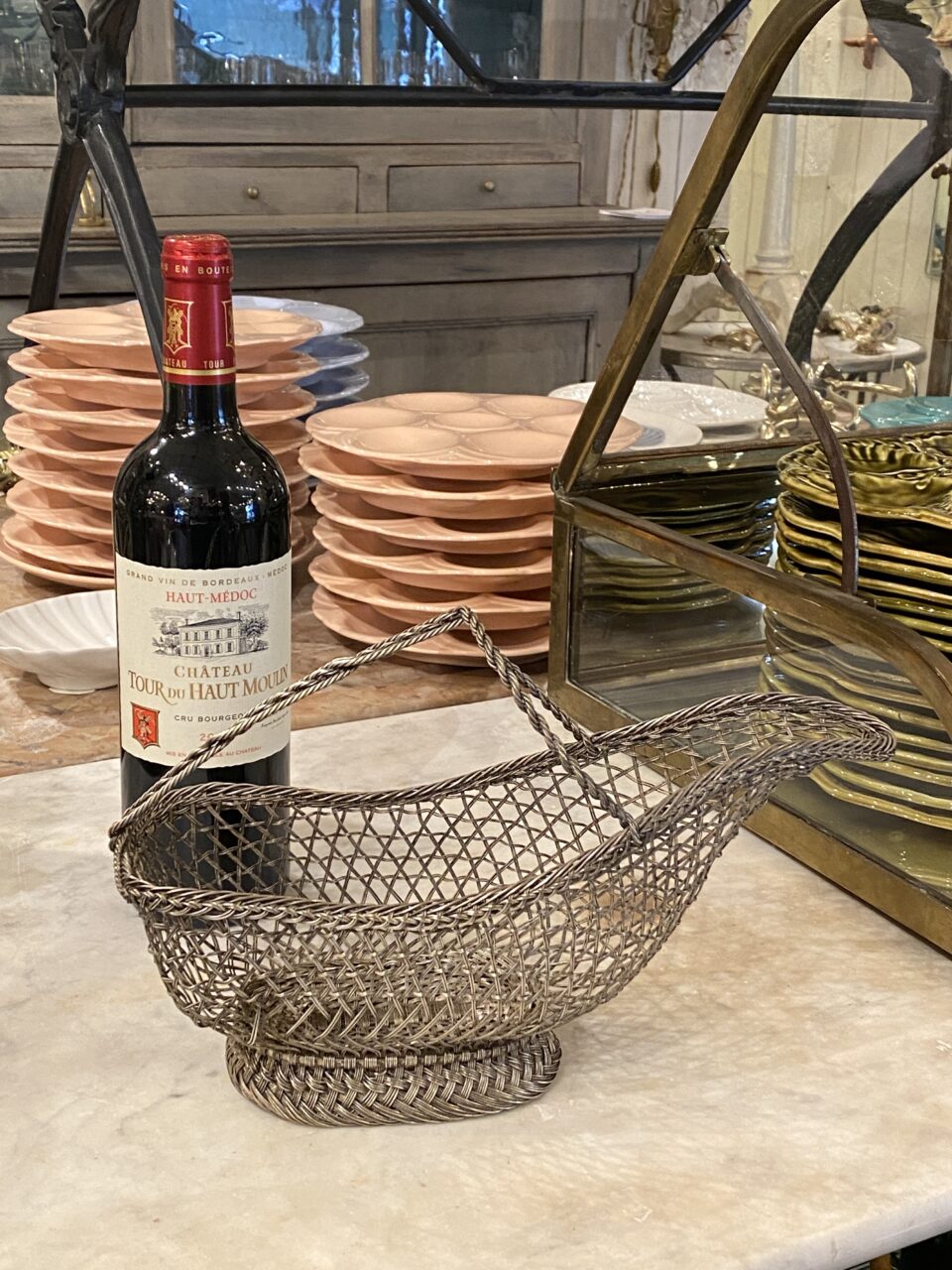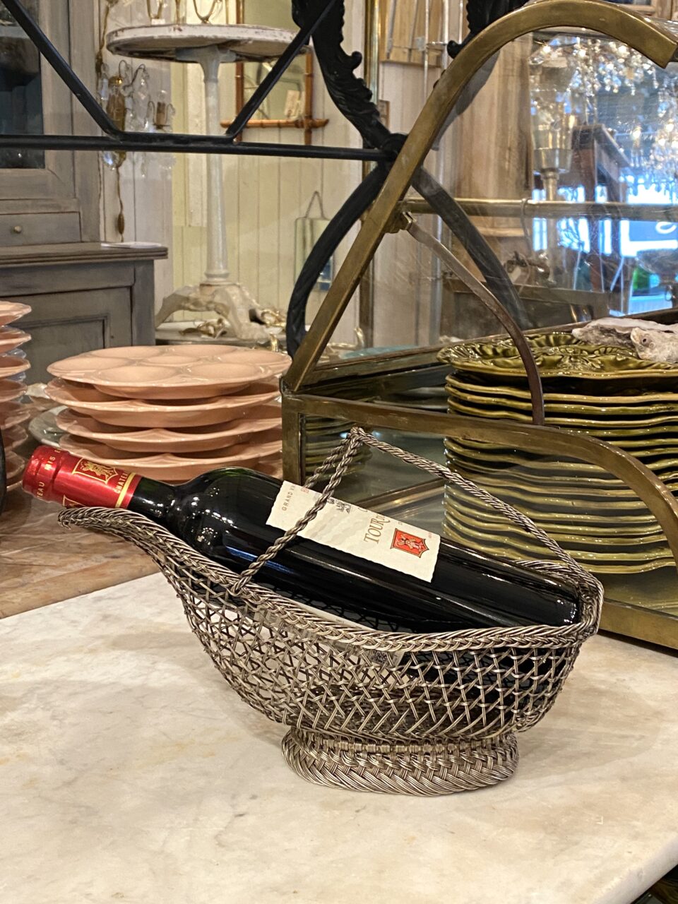 Elegant gammel fransk flettet vinholder/flaskeholder i pletsølv til servering af vin.